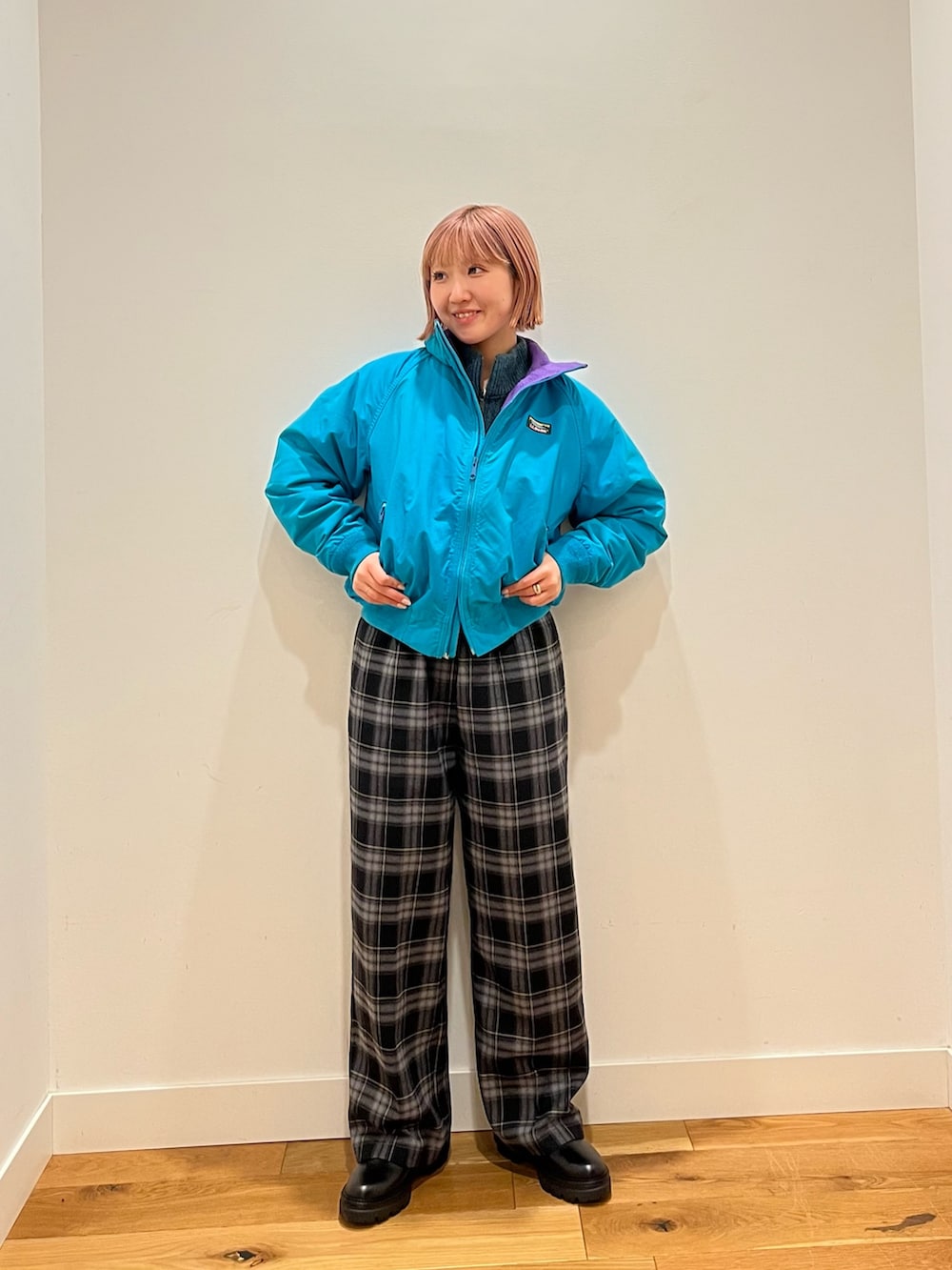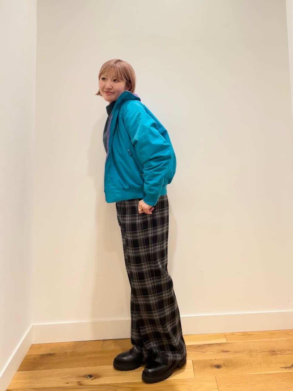 チェック柄がスタイリングのアクセントとなり、冬の着こなしに程よい華やかさをプラス◎