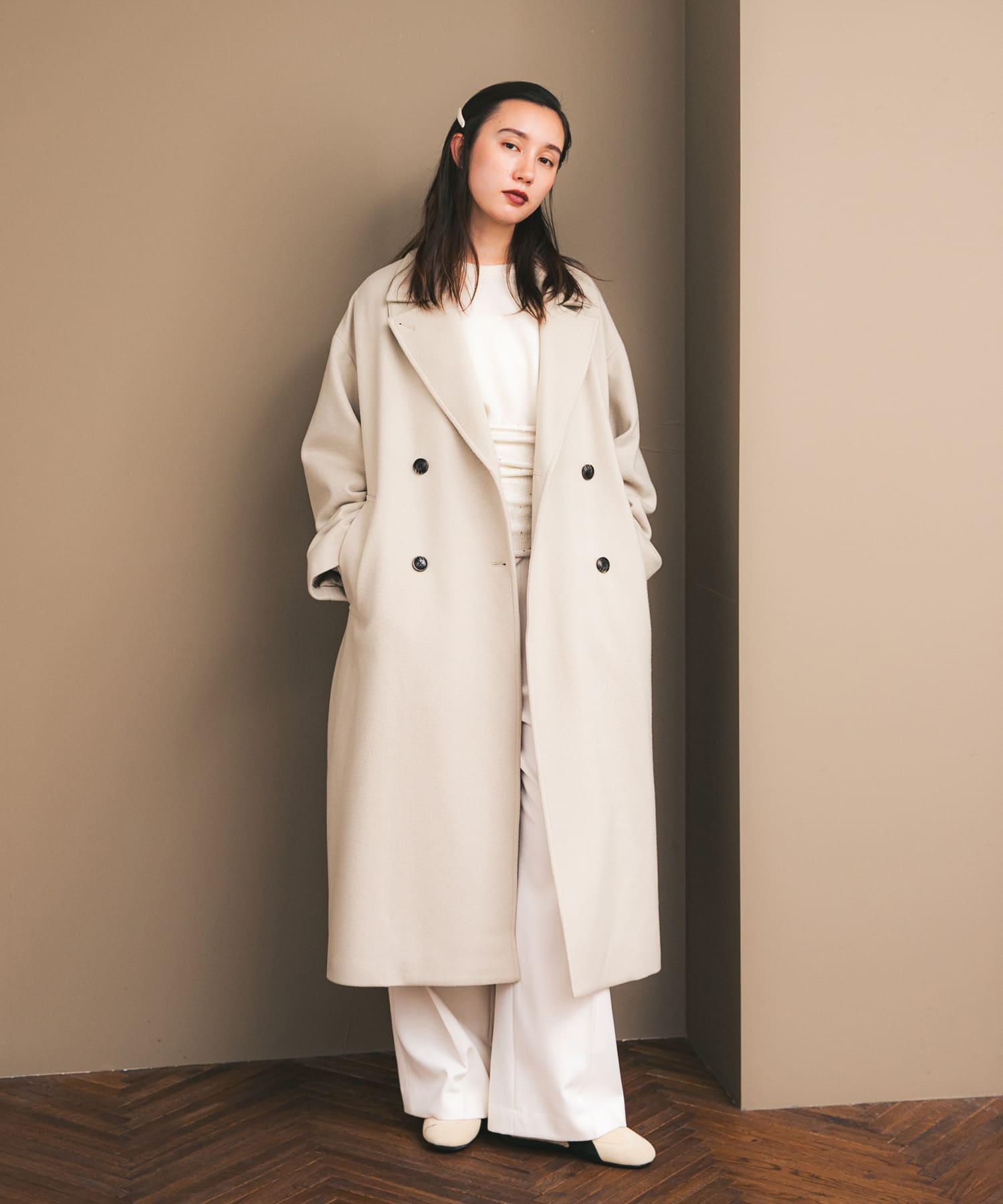 ちょっぴりお値段は高いけど、シルエットがきれいで気に入ったのでリアルバイしたチェスターコート✨