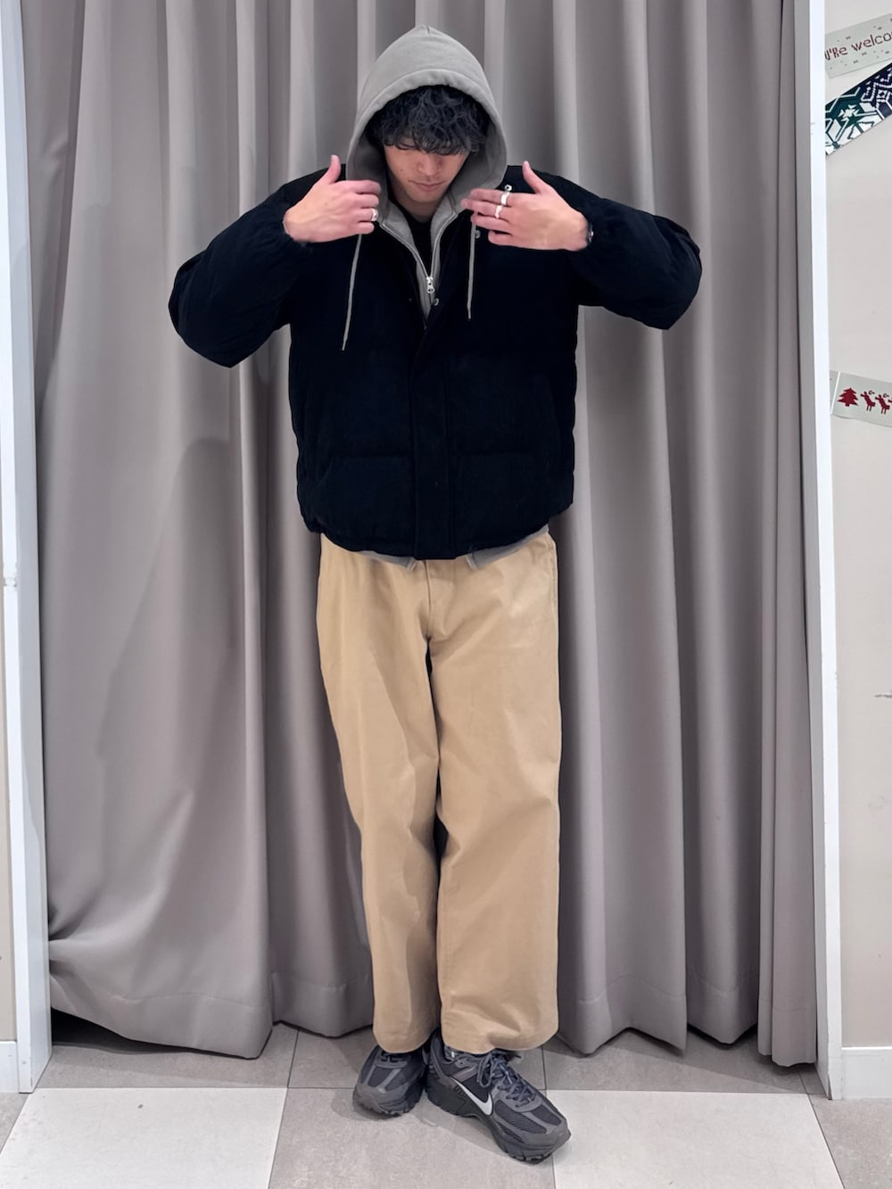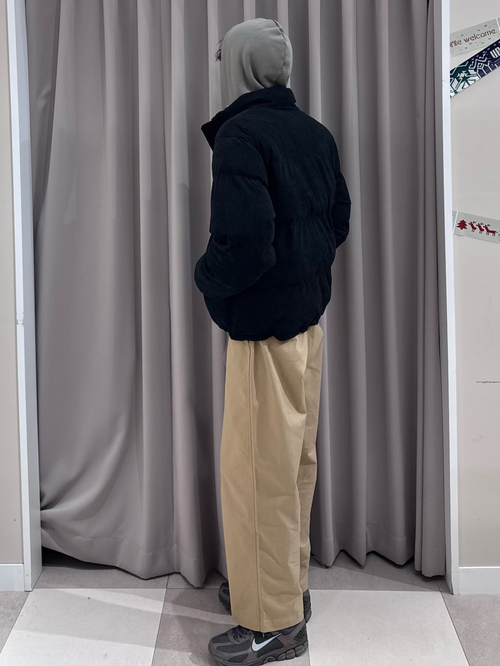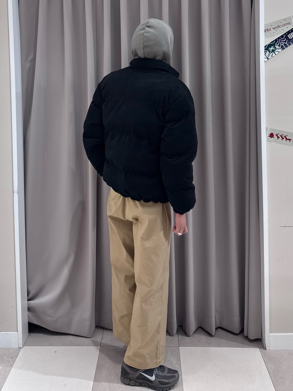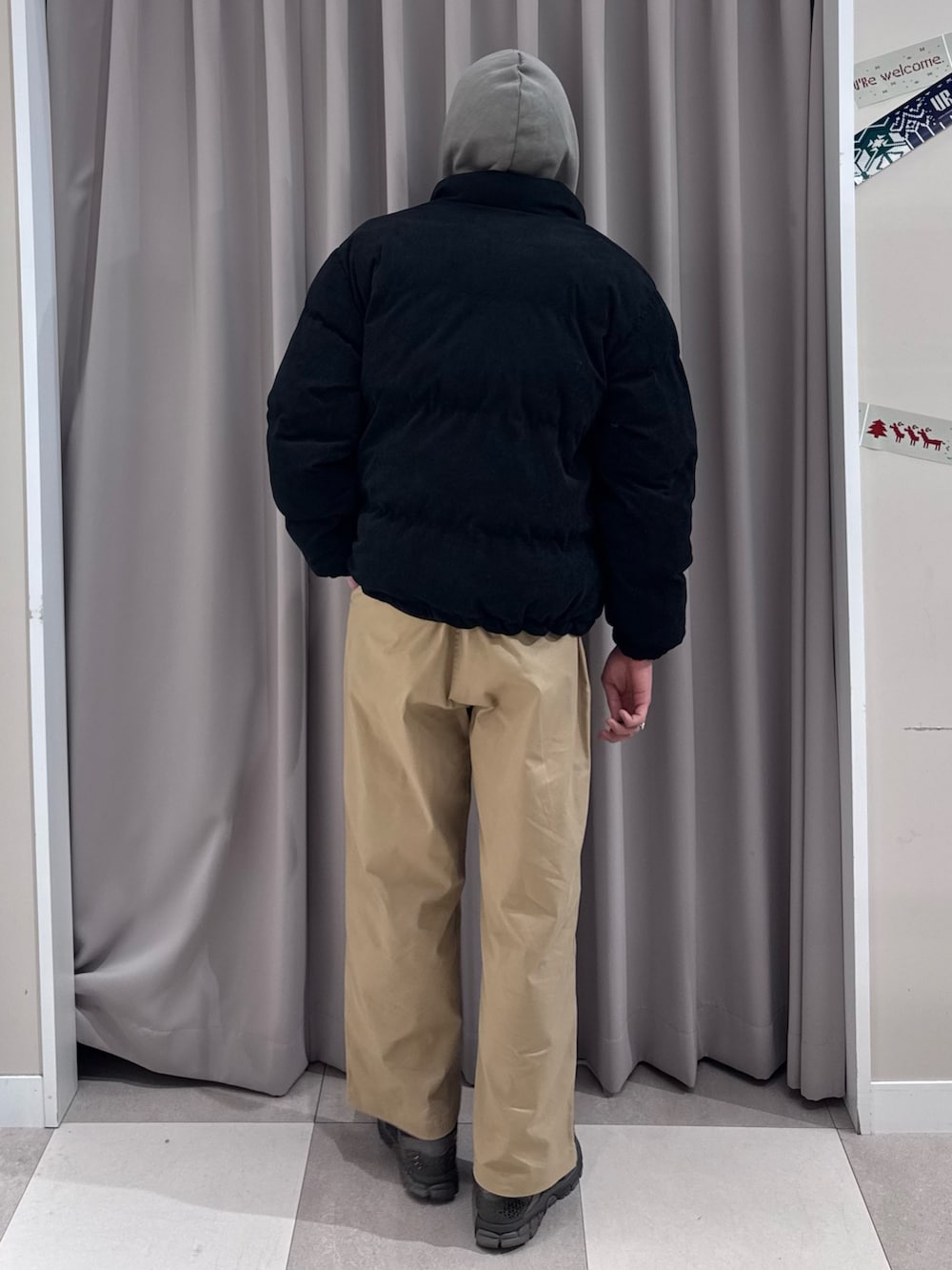 コーデュロイのブルゾンは裾部分にドローコード付いているので締めて丸いシルエットで是非。