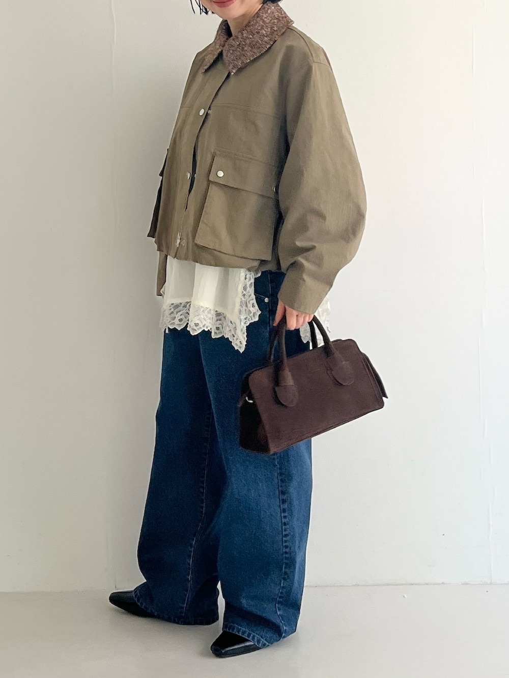 襟部分取り外しが可能なジャケットは、服に合わせて雰囲気を変えられます。ゆったりしたお袖のシルエットが可愛いです!キャミソールは春の始まりに取り入れやすく、スウェットやニットを重ねるのがおすすめです!