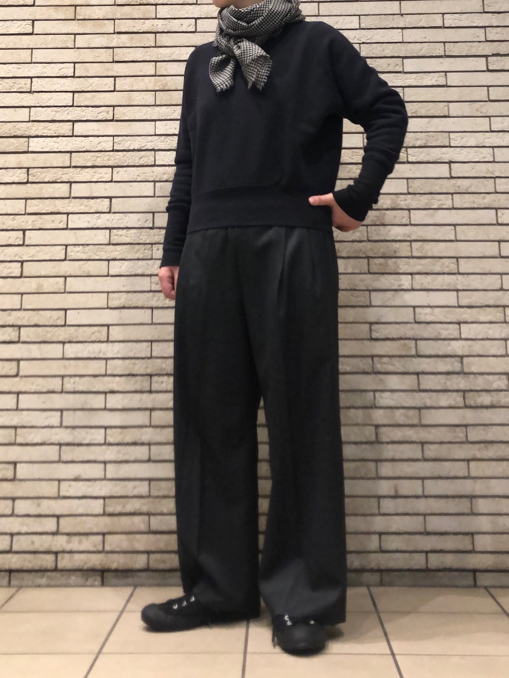 今回はきれいめイージーパンツと合わせてカジュアルダウンした大人の装いです。