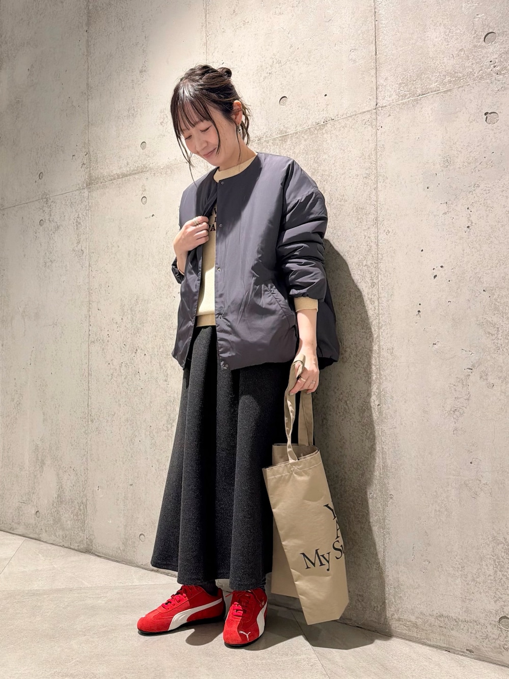 パンツはウエストがゴム仕様になっており、リラックス感のあるシルエットです。