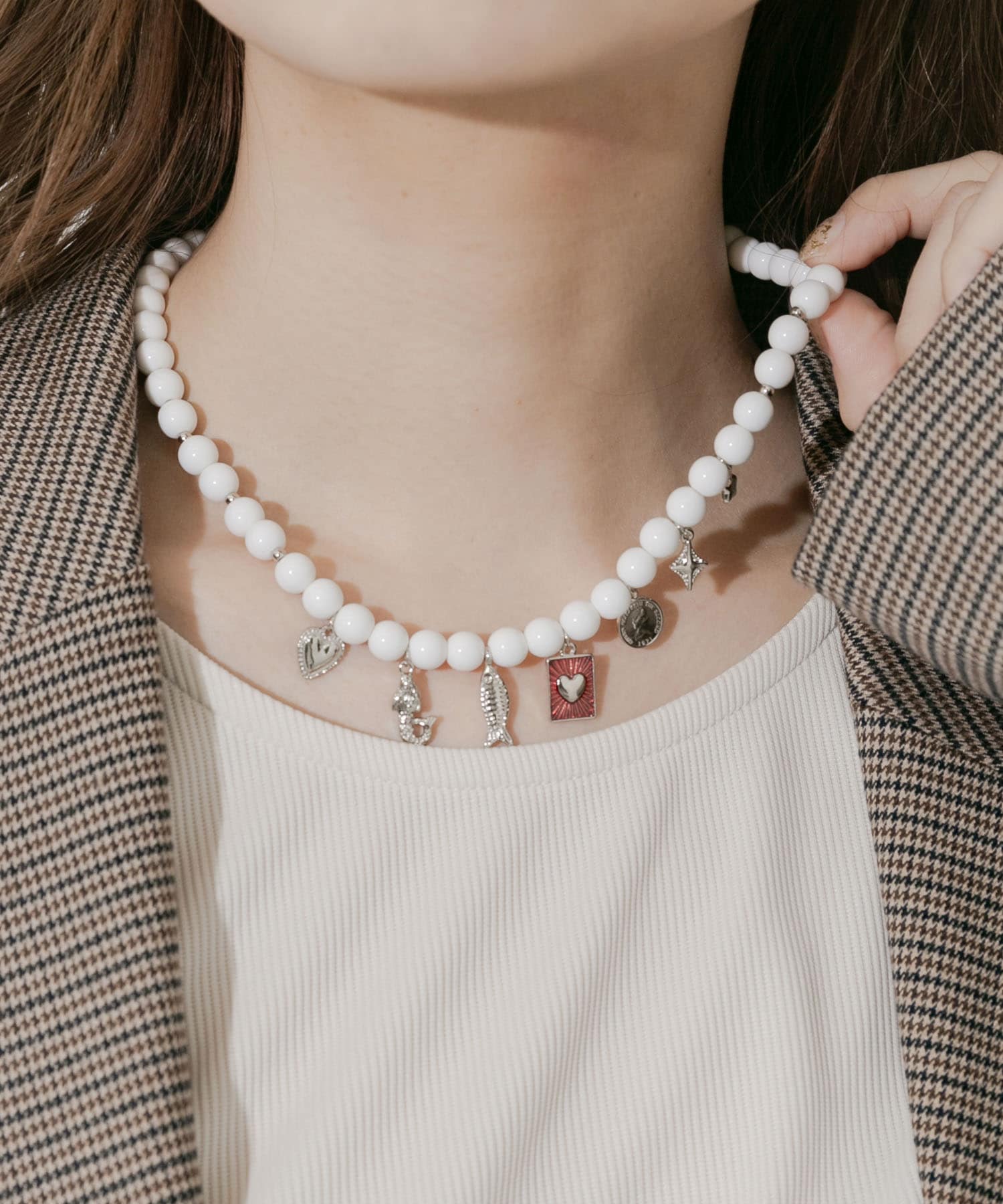 ミックスチャームビーズマンテルネックレス