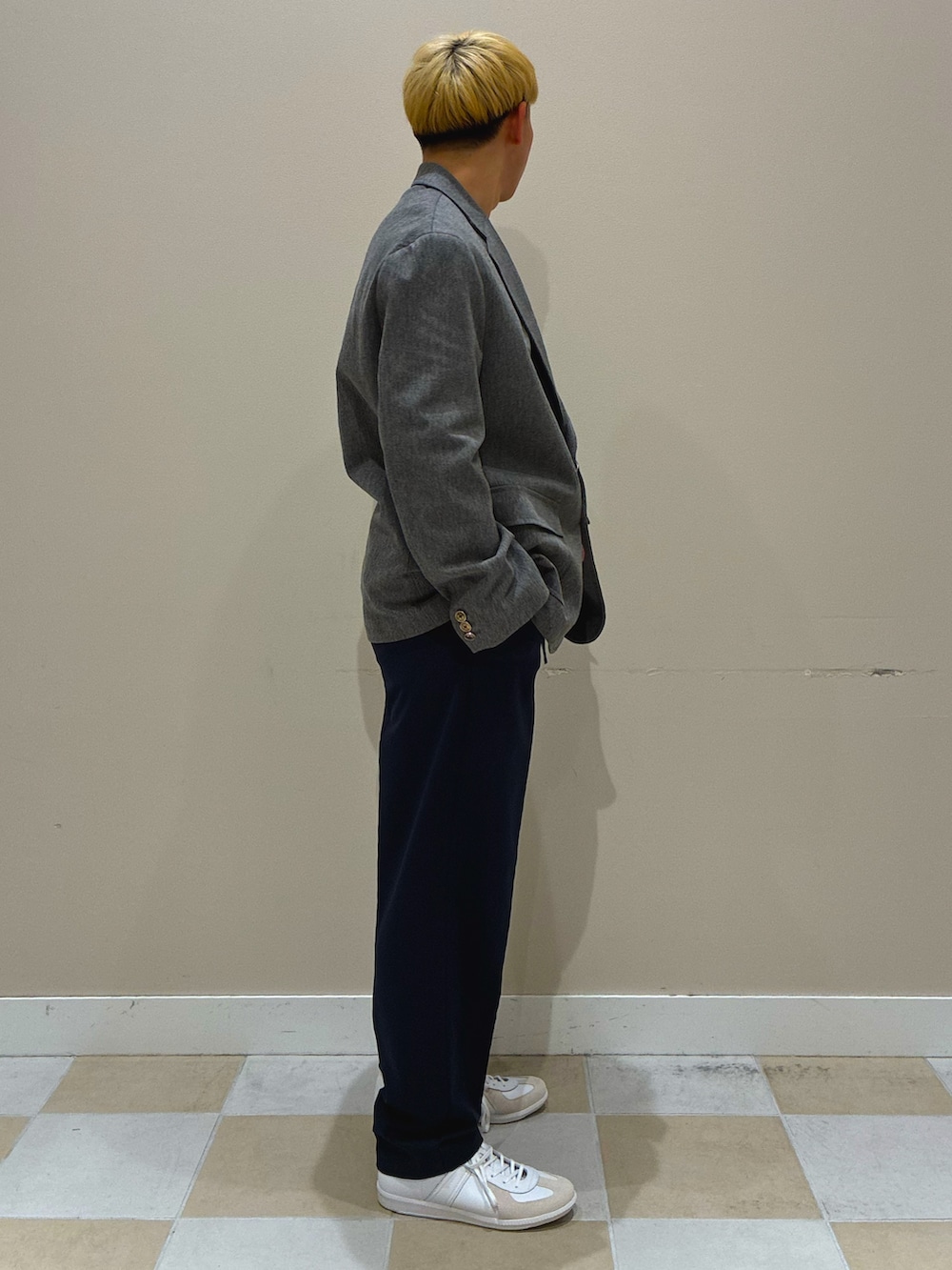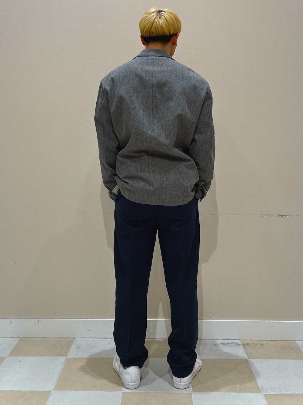 ・グレーのジャケットを主役にした、シンプルで大人っぽいスタイリング