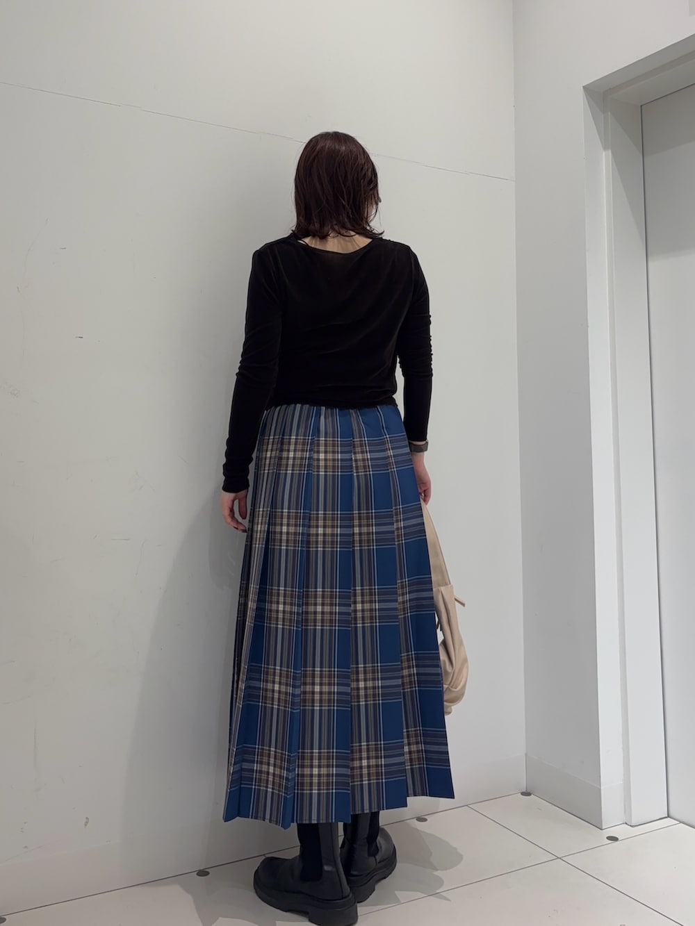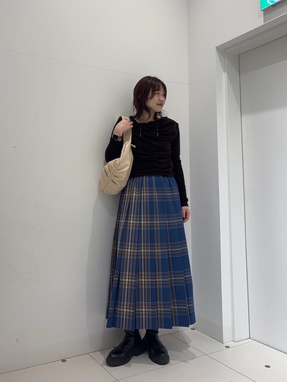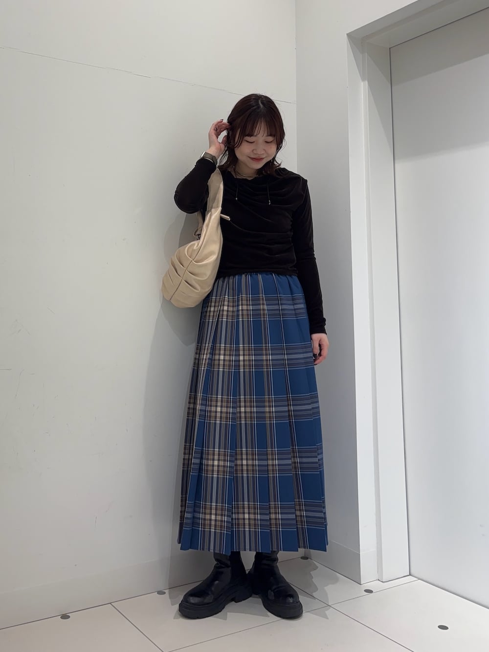 トップスはダークブラウンのトップスを合わせて今年っぽい色合わせに。