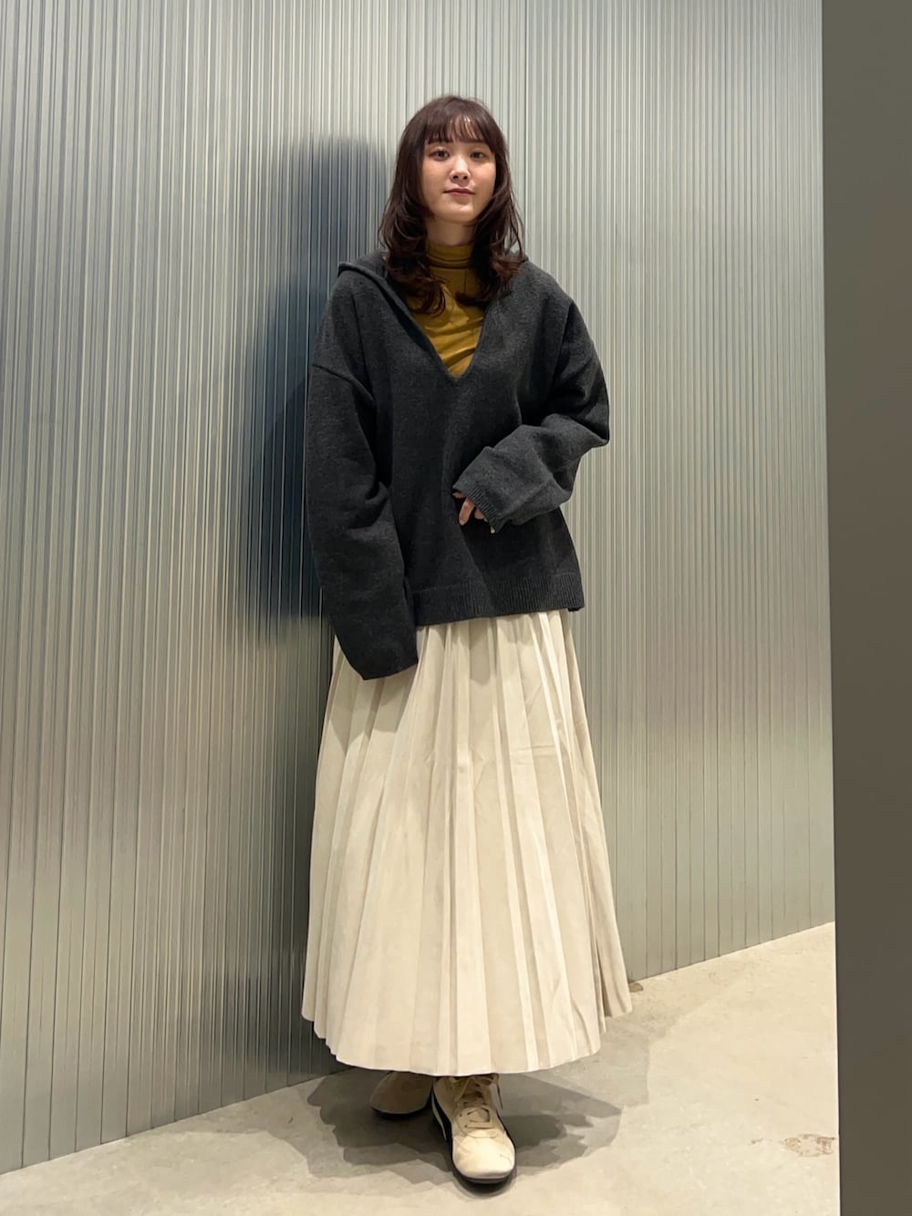 ITEMSフェイクスエードプリーツスカート- 着用カラー: