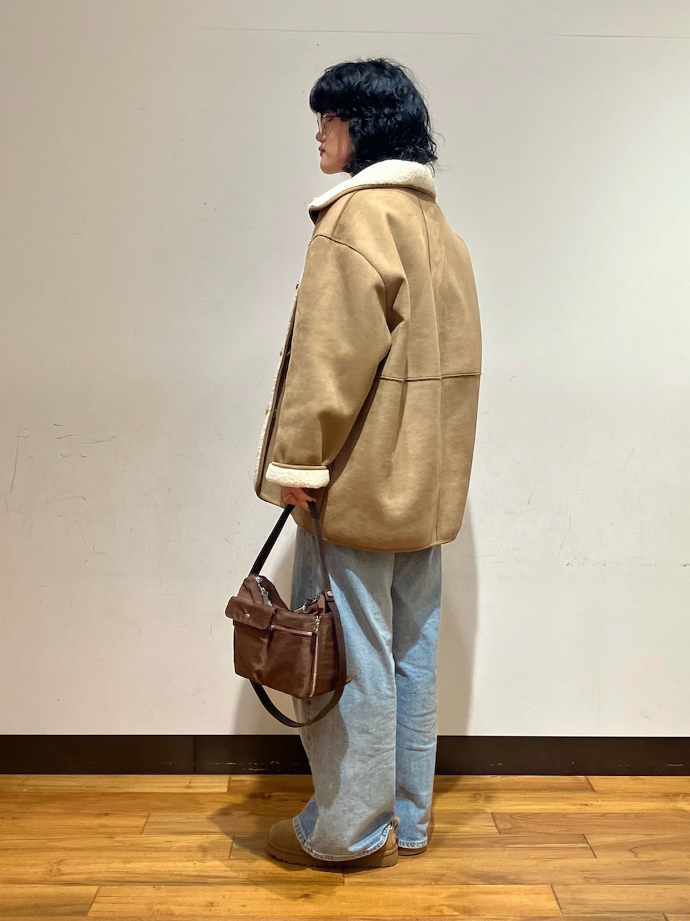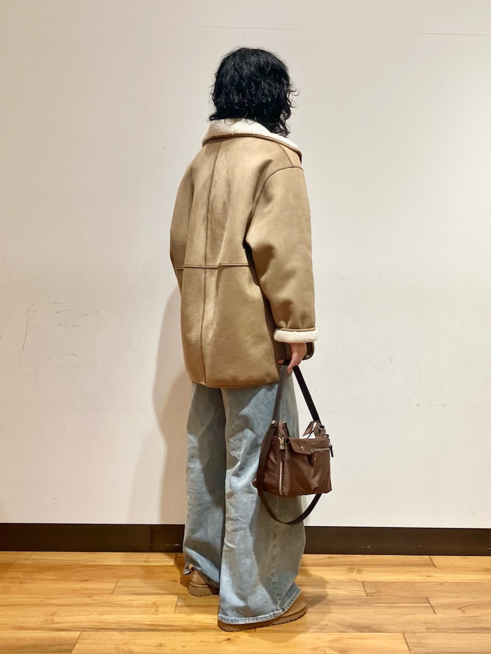 フェイクムートンコートはフリーサイズで腰周りまである丈感でしっかり暖かいです🧤💭