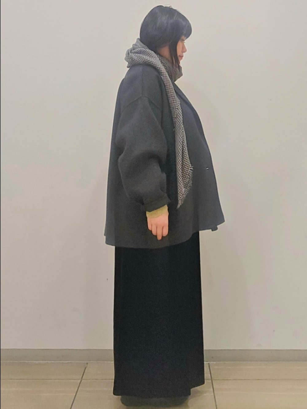 腰回りは隠れる着丈感で、しっかり寒さもしのげます。
