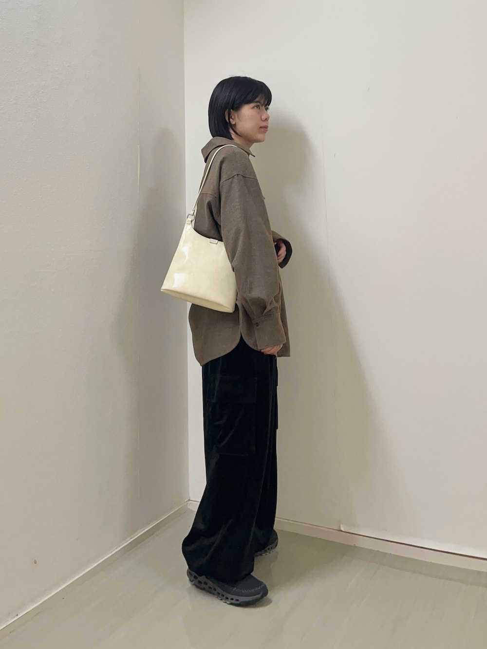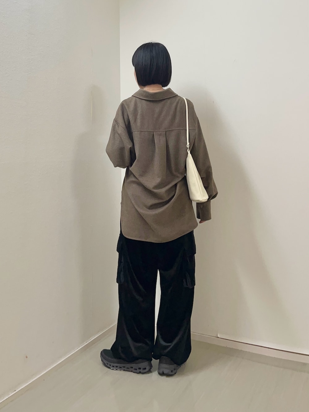 ウールのシャツとベロアパンツでゆるっとカジュアルコーデ◎