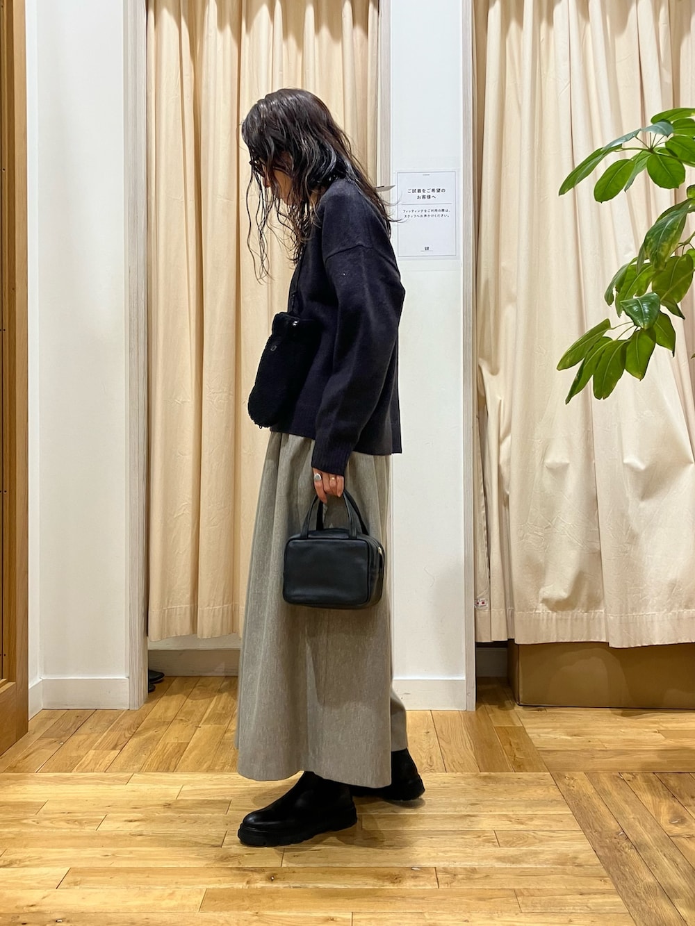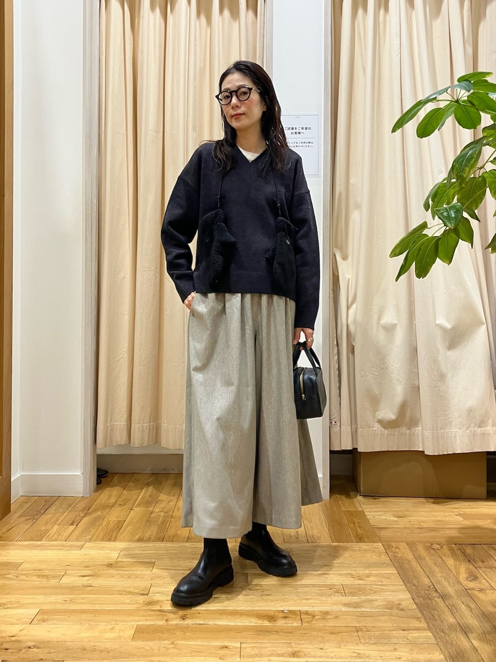インナーを楽しめるVネックが可愛いニット。一枚で着ても気にならない程よい開き感です。ネイビーですが、赤の糸が混じっているメランジ素材が◎