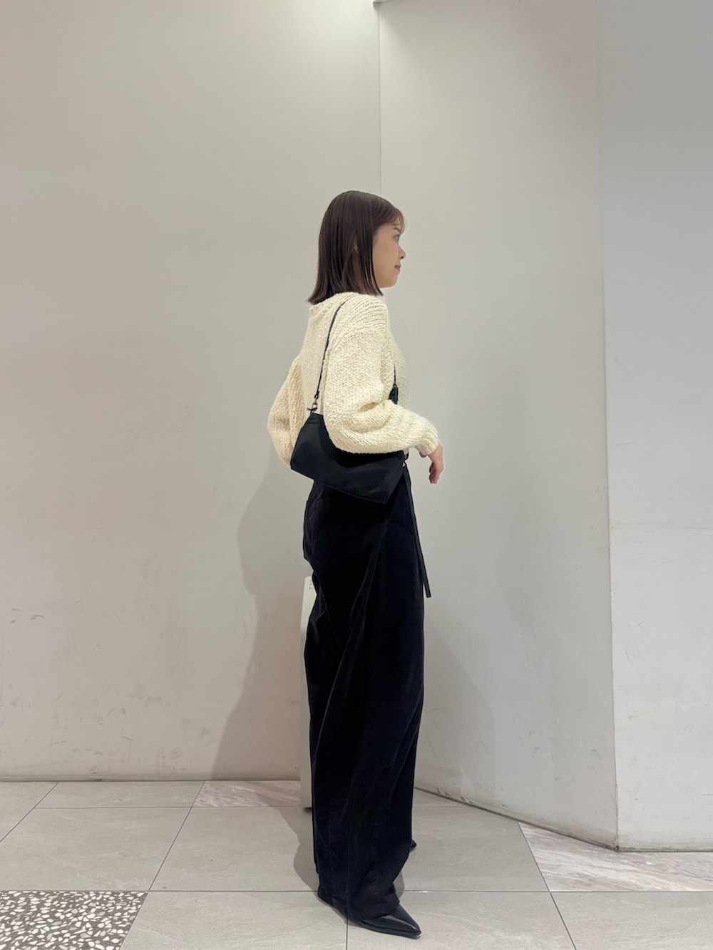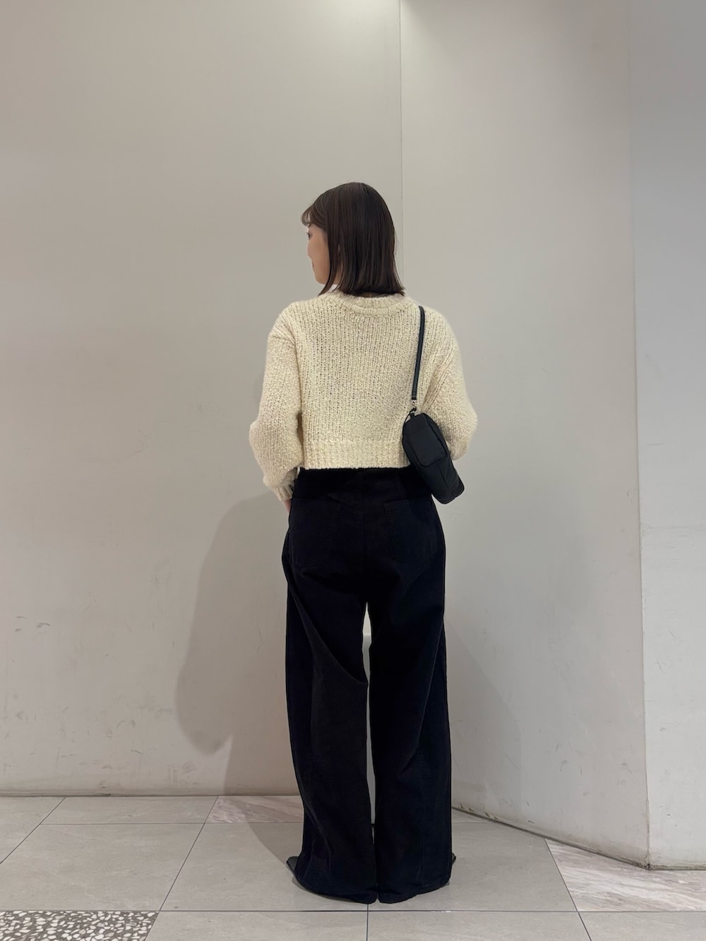 着丈が短いので、ハイウエストのパンツやボリュームのあるロングスカート合わせがオススメです。