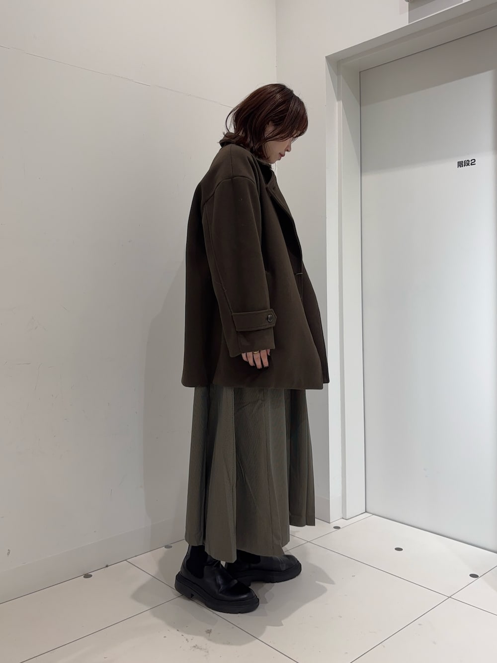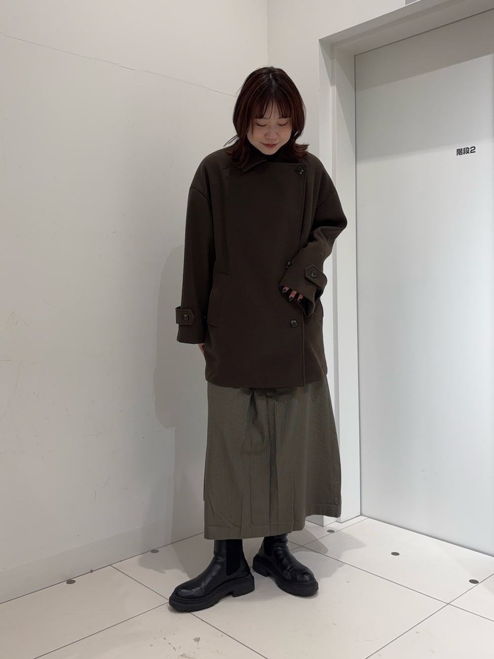 同じブラウントーンのミドルコートと合わせて、高身長ならではスタイリングです!