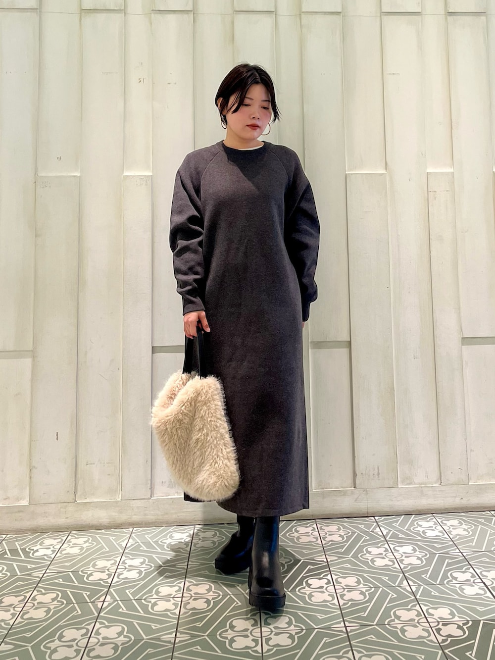 ラグランスリーブと首元のリブ感が少しカジュアルな印象のワンピースです!