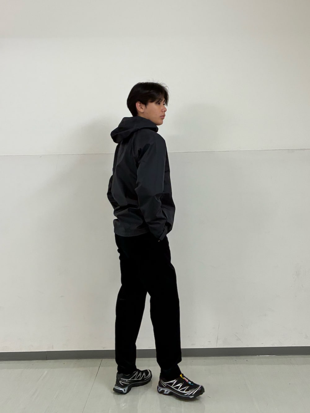 パタゴニアのシェルジャケットをメインにした、大人のオールブラックコーデ。