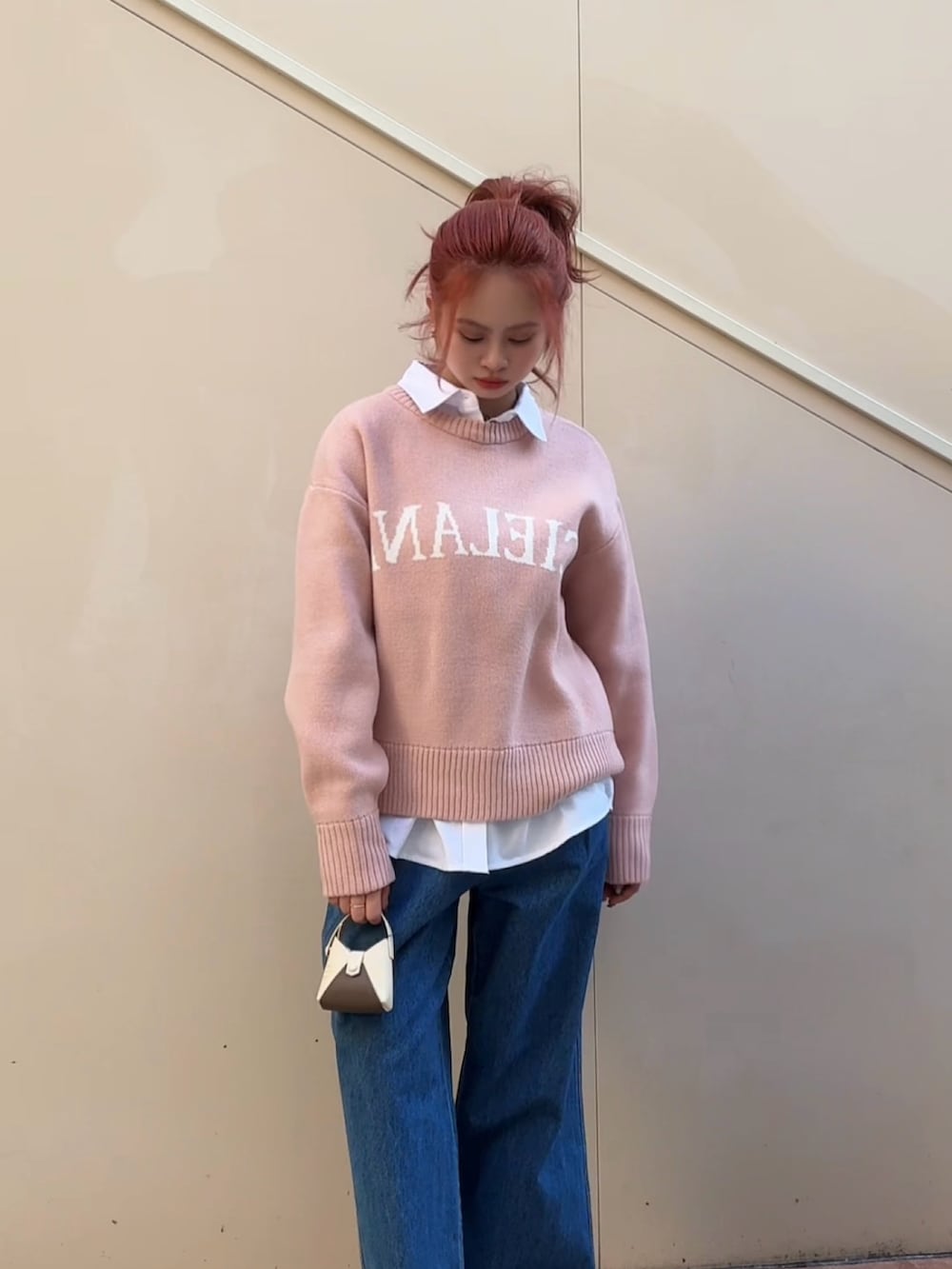 ニットセーターの下にポロシャツを重ね、襟元からさりげなく覗かせたレイヤードがポイント。程よくきちんと感のあるトップスに、デニムパンツを合わせることで肩の力を抜いたカジュアルバランスに仕上げました。シンプルながら奥行きのあるスタイリングで、デイリーにもお出かけにも使いやすい、清潔感とこなれ感を両立したコーデです。