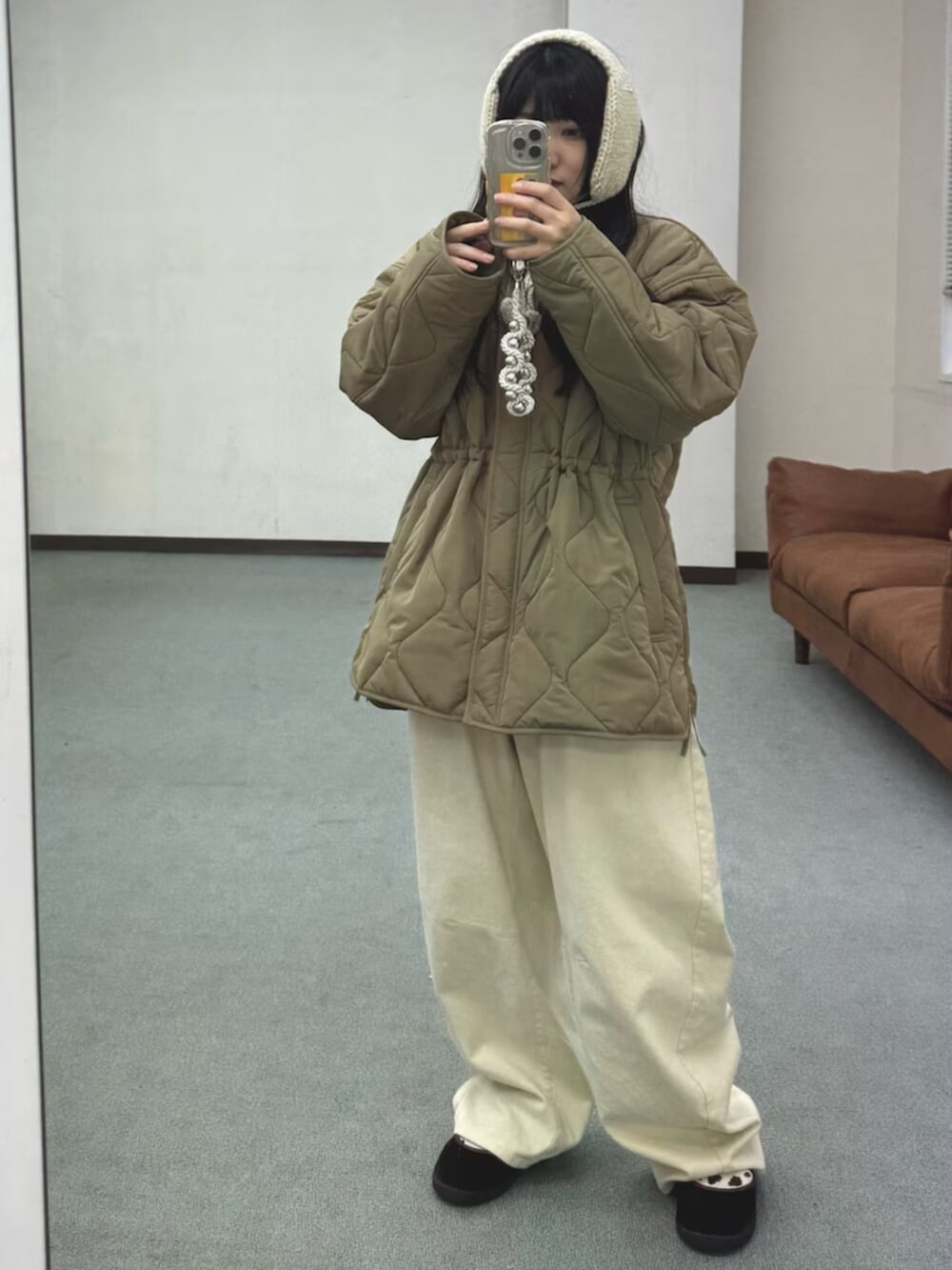 アウターのウエスト部分が絞れたので、全体的にダボっとした服装でもメリハリが出ました☺︎