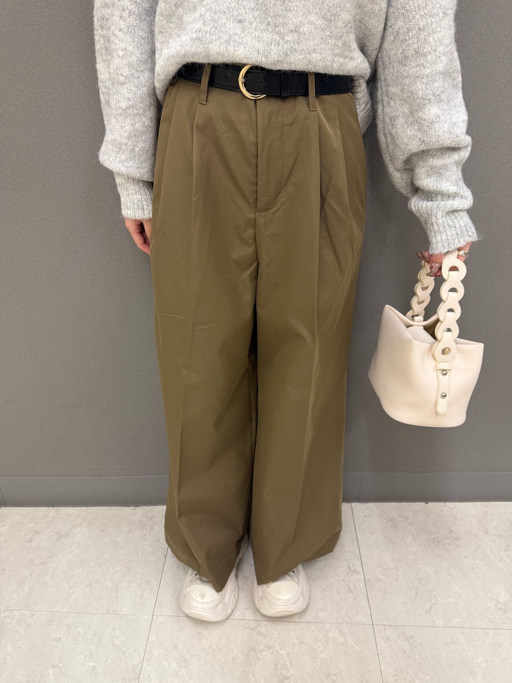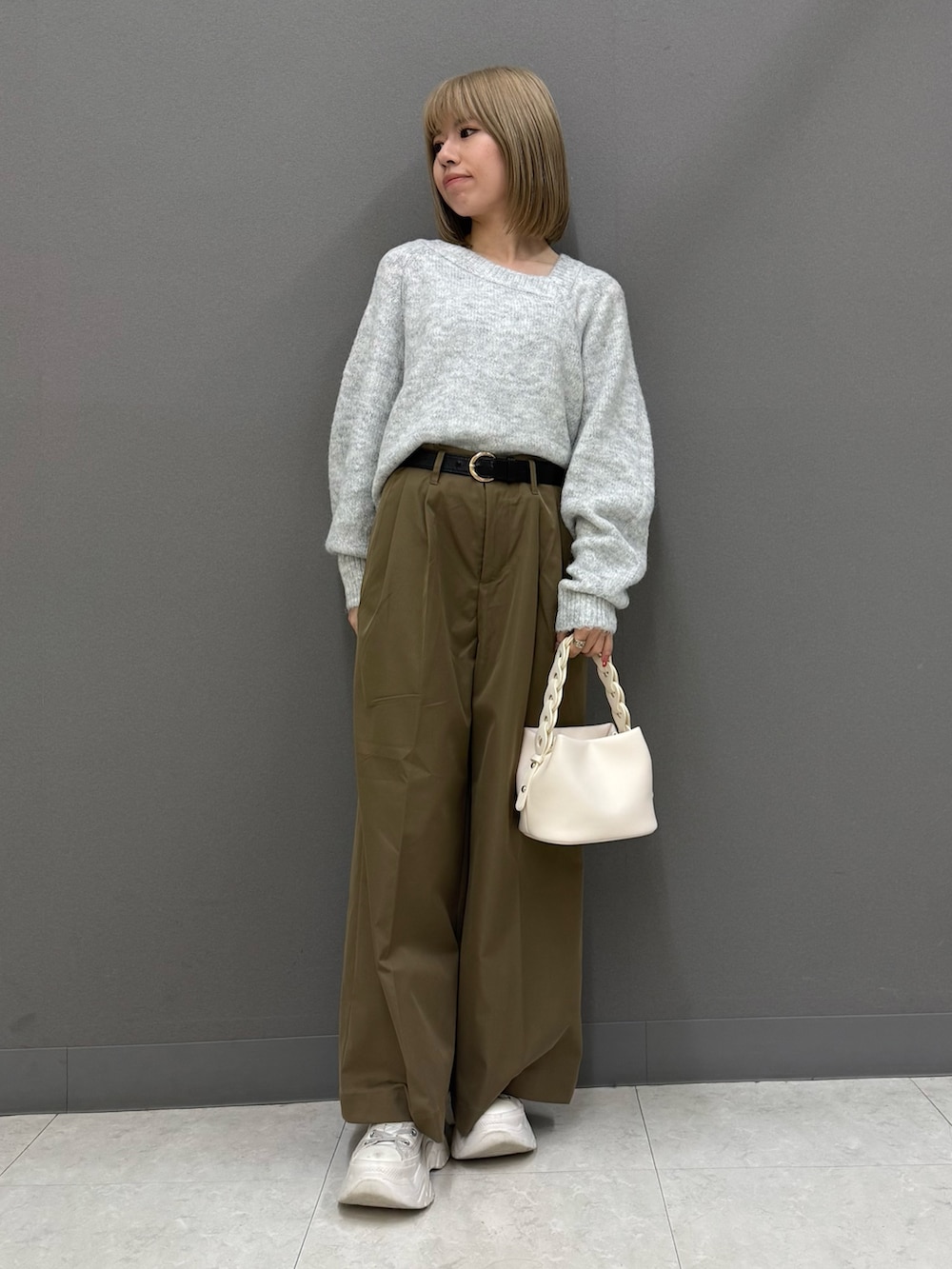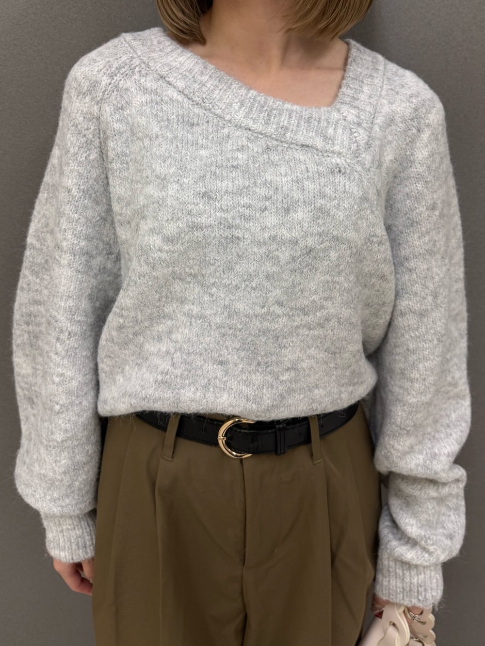 中のセーターはアシンメトリーでデザイン性のあるアイテムになってます😌