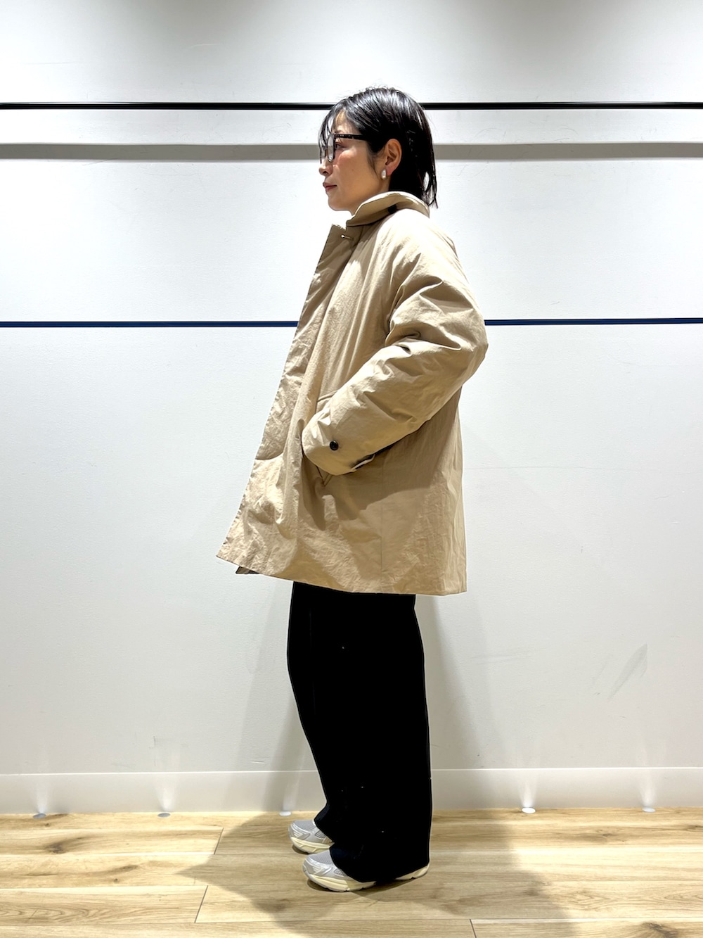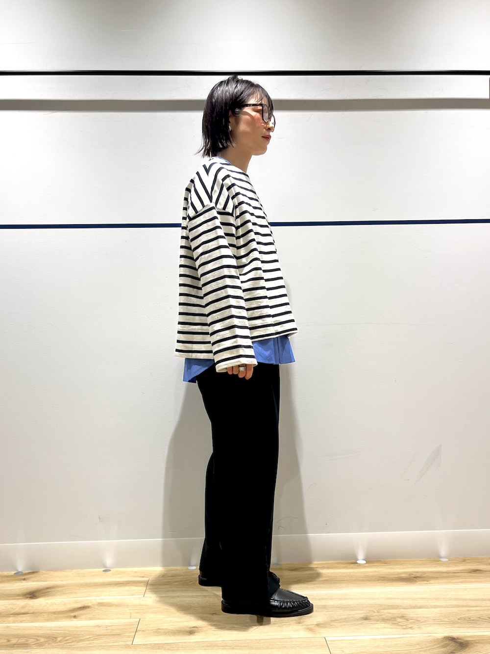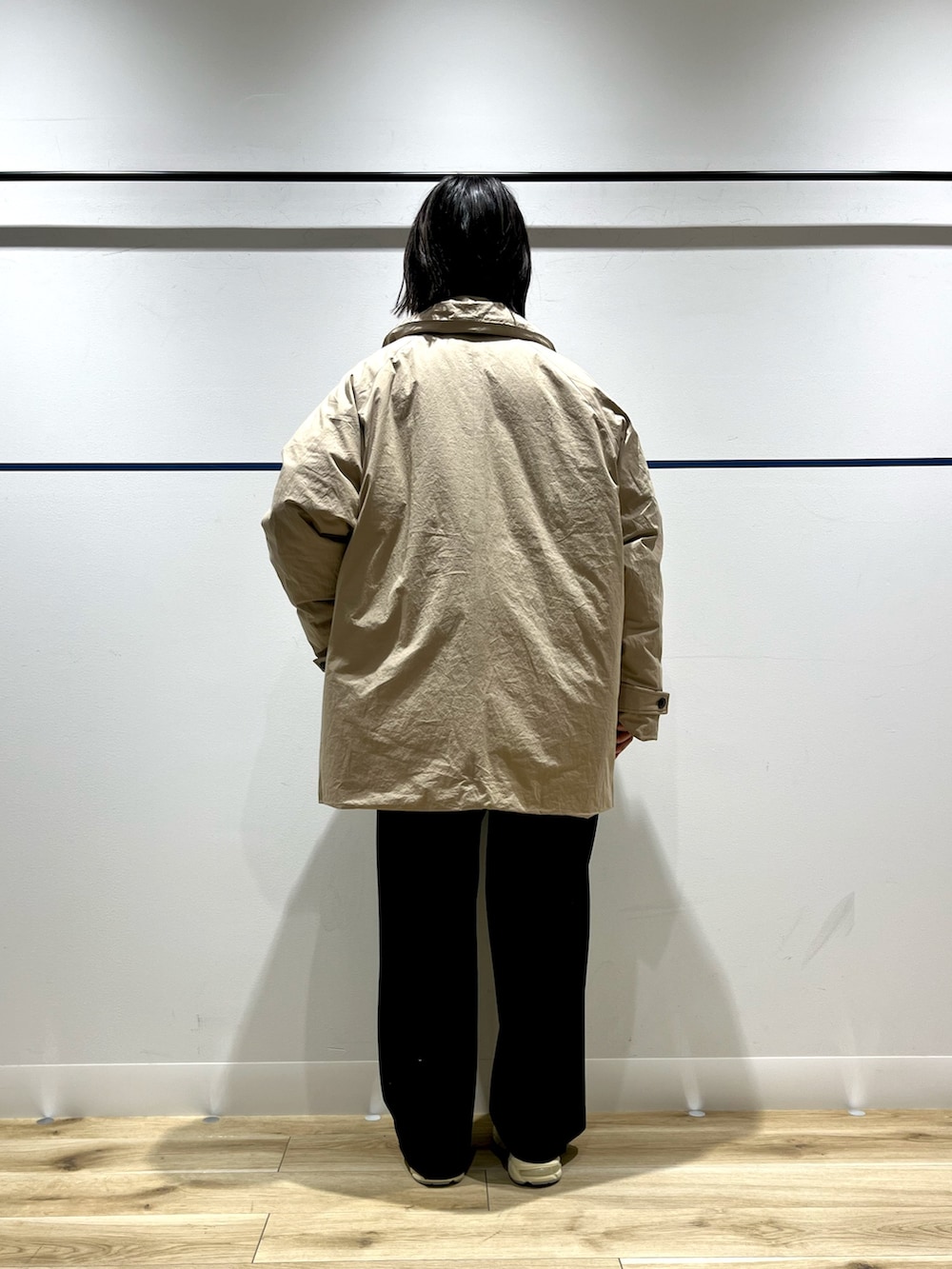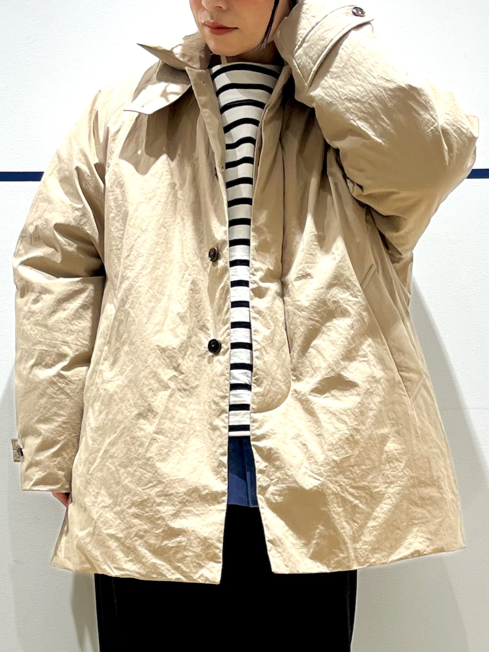 ベージュは春先の寒い日まで使えそうなお色味なので、INにボーダーをいれて、