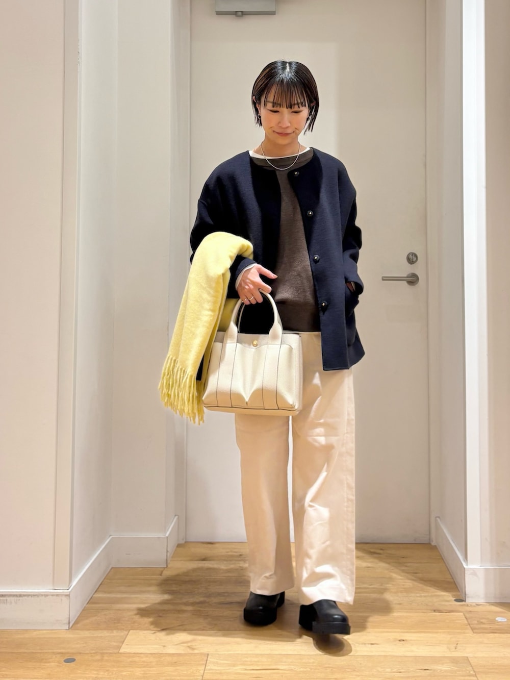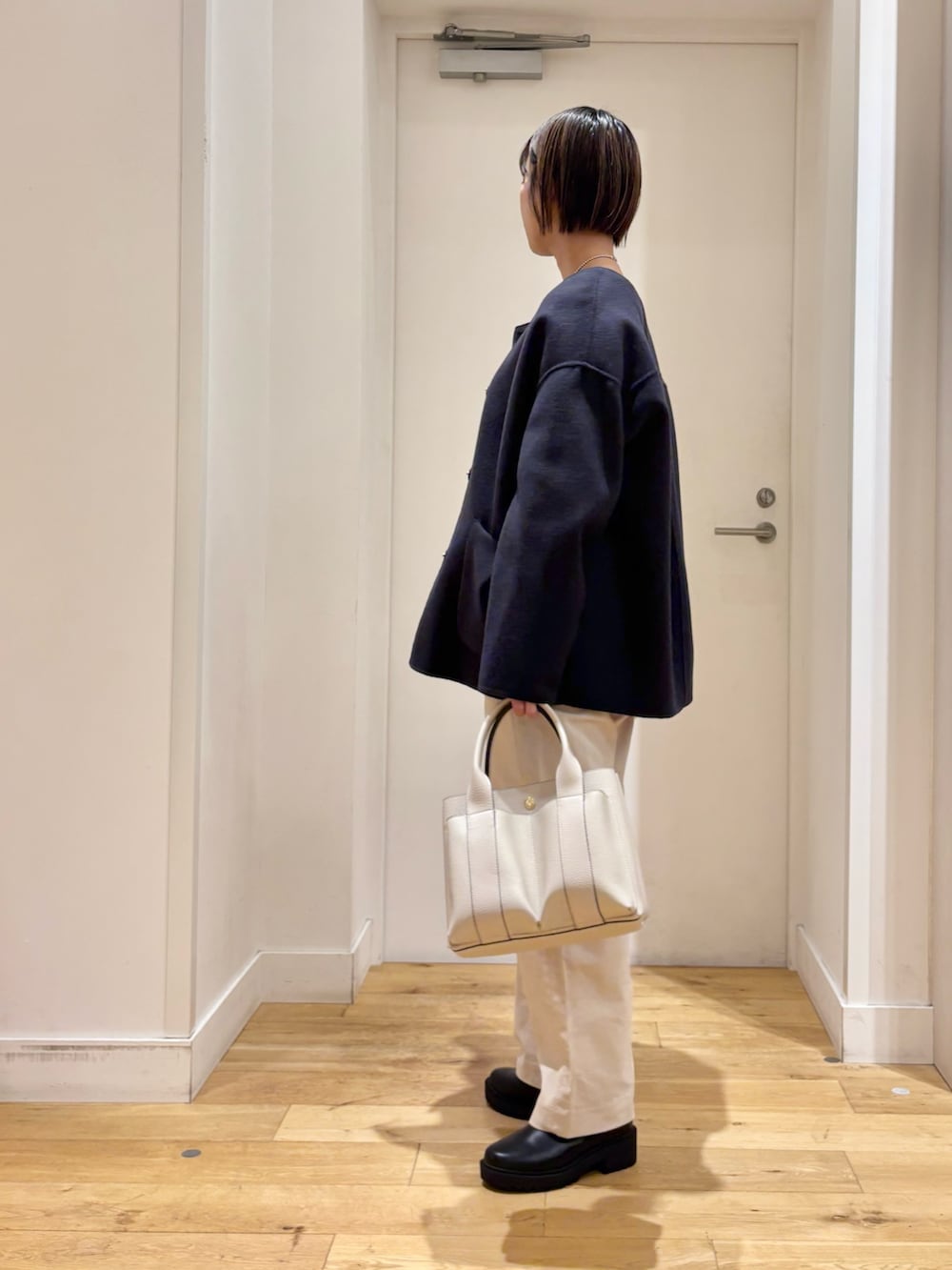 コートは、ゆったりシルエットなので厚手のアイテムとも合わせやすく、温度調節がしやすいので長い時期にお使いいただけます◎