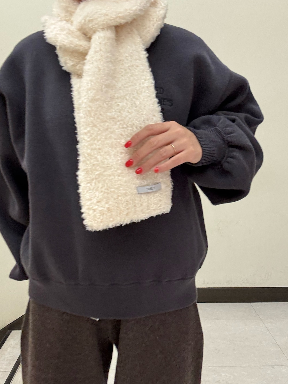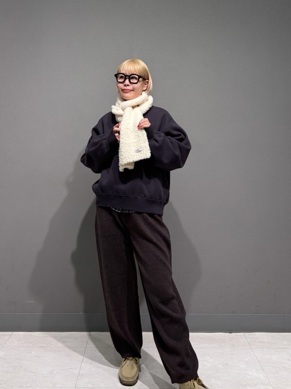 カジュアルスタイルにクルッと巻いてアクセントに。柔らかいです。