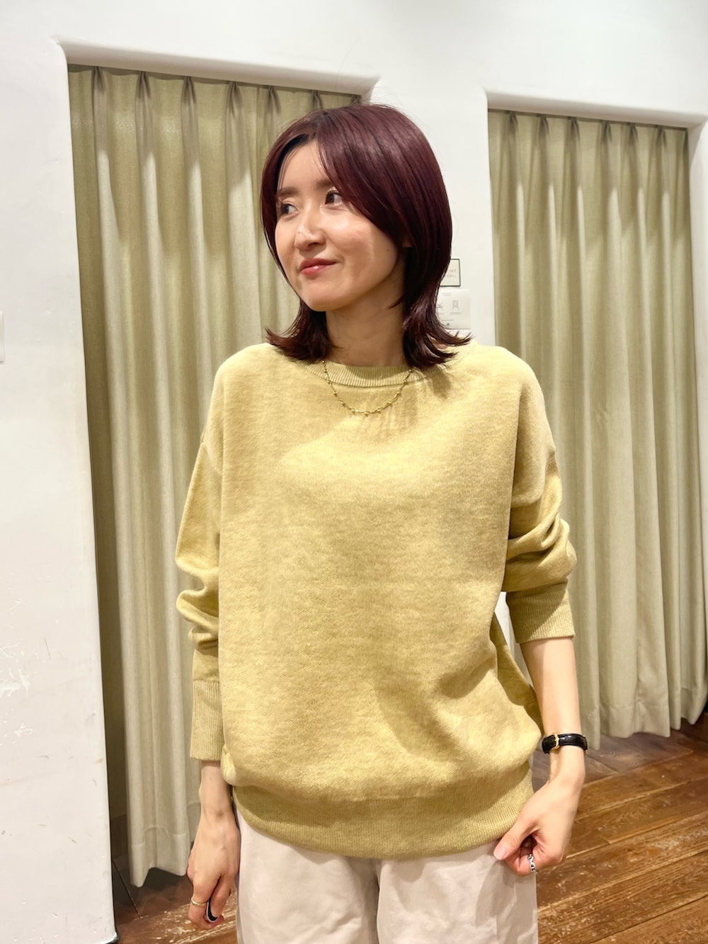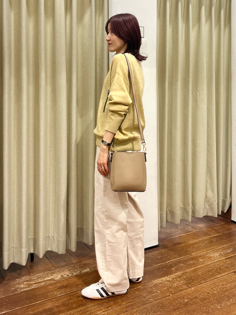 合わせたトップスはイエローでも優しいカラーなので色物にチャレンジしたい方にもぴったりです。