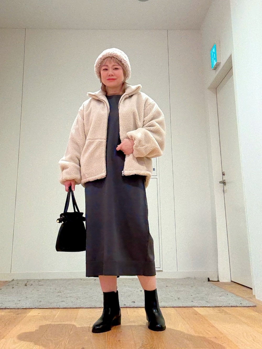 甘すぎないブルー系のワンピース、シルエットがとても綺麗です✨
