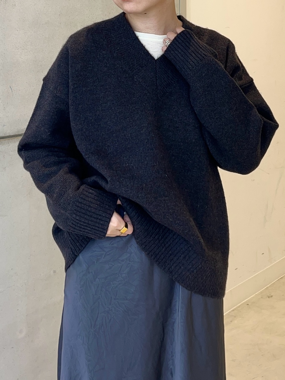 深過ぎないVネックで、インナー有り無し両方で着ていただけます☺️
