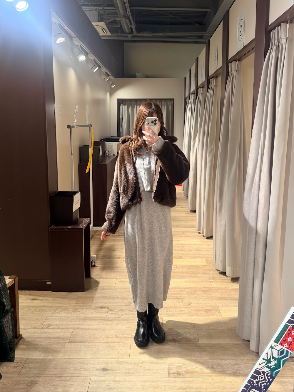 胸元のモコモコが可愛いワンピはおでかけコーデにピッタリです🩶✨