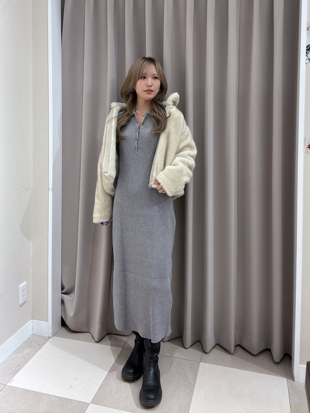 襟付きリブニットワンピースの着回し🤍