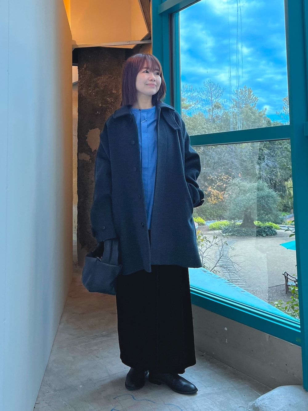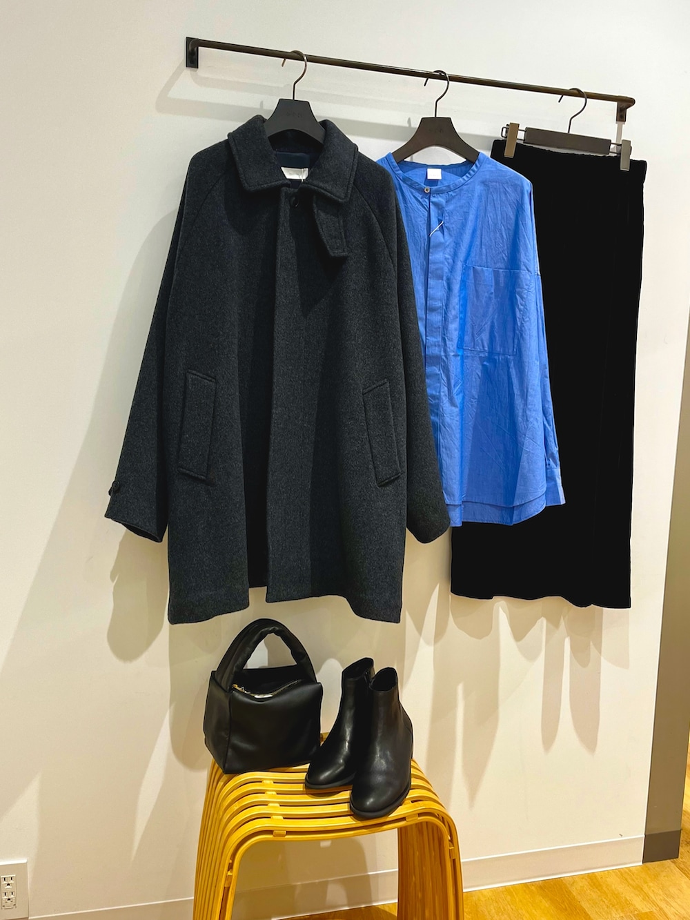 ウール素材のやさしい表情と、身体を包み込むようなシルエットが魅力です。