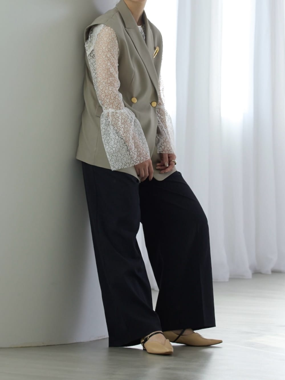 ROSSOフレアスリーブレースブラウス- カラー: