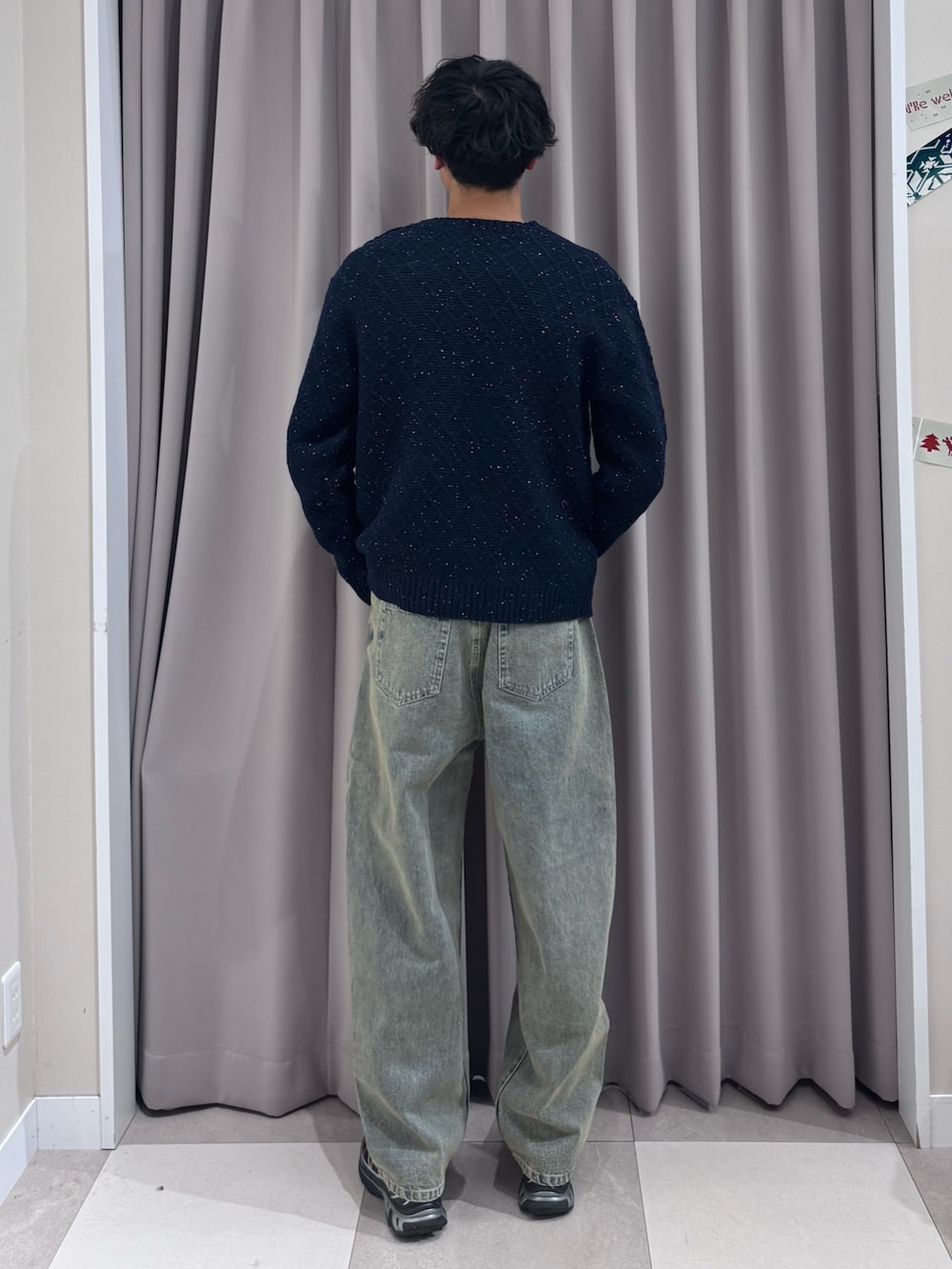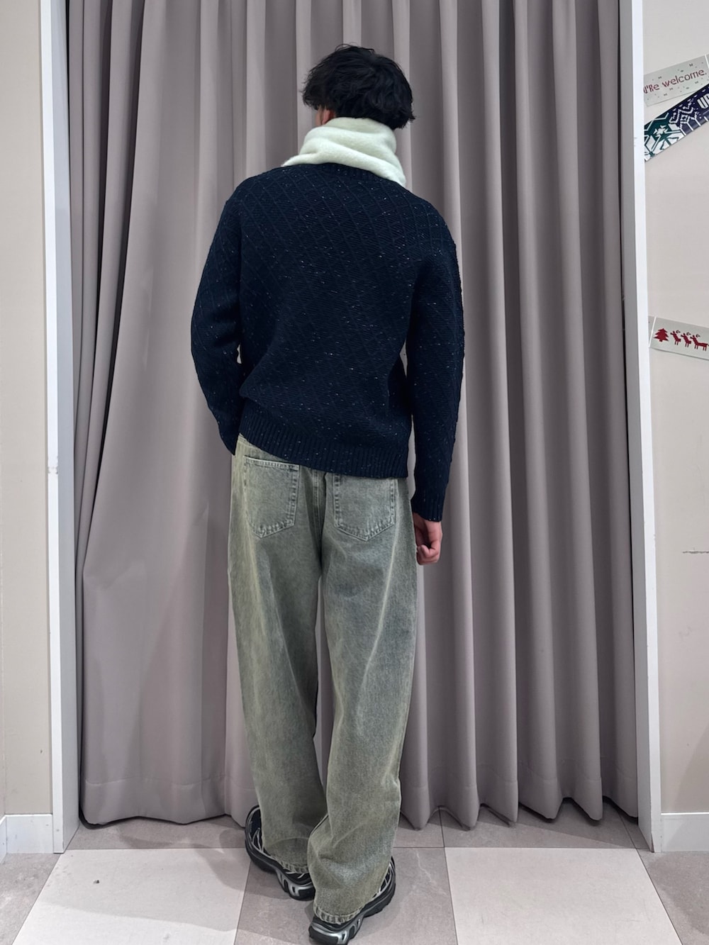 デニムとニットのみだと寒見えするのでブークレのストールを🧣