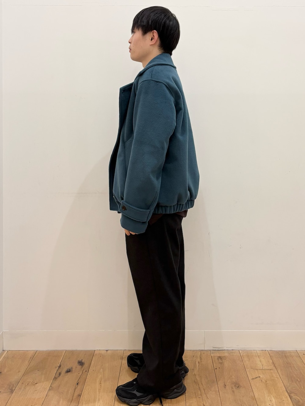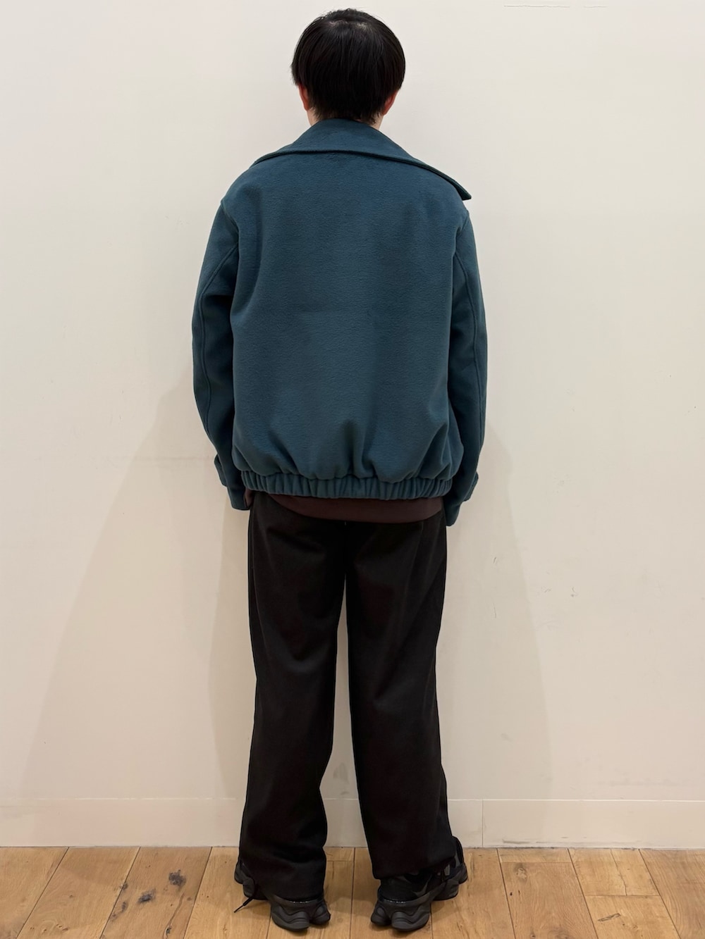 ウールライクで温かみもあり、ウエストにゴムが入っていて履きやすさ抜群のワイドパンを組み合わせました!