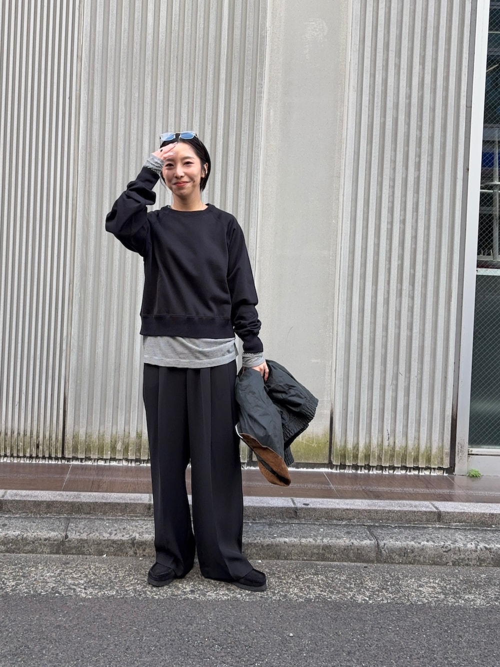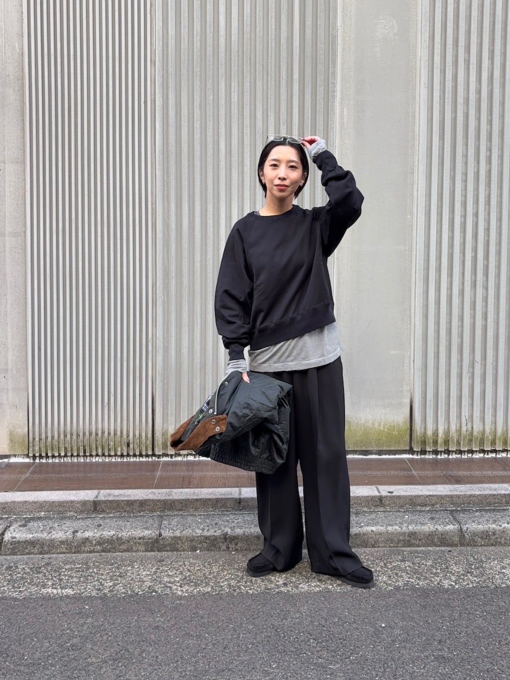 身幅と着丈のバランスで垢抜けたスタイルになるスウェット◎