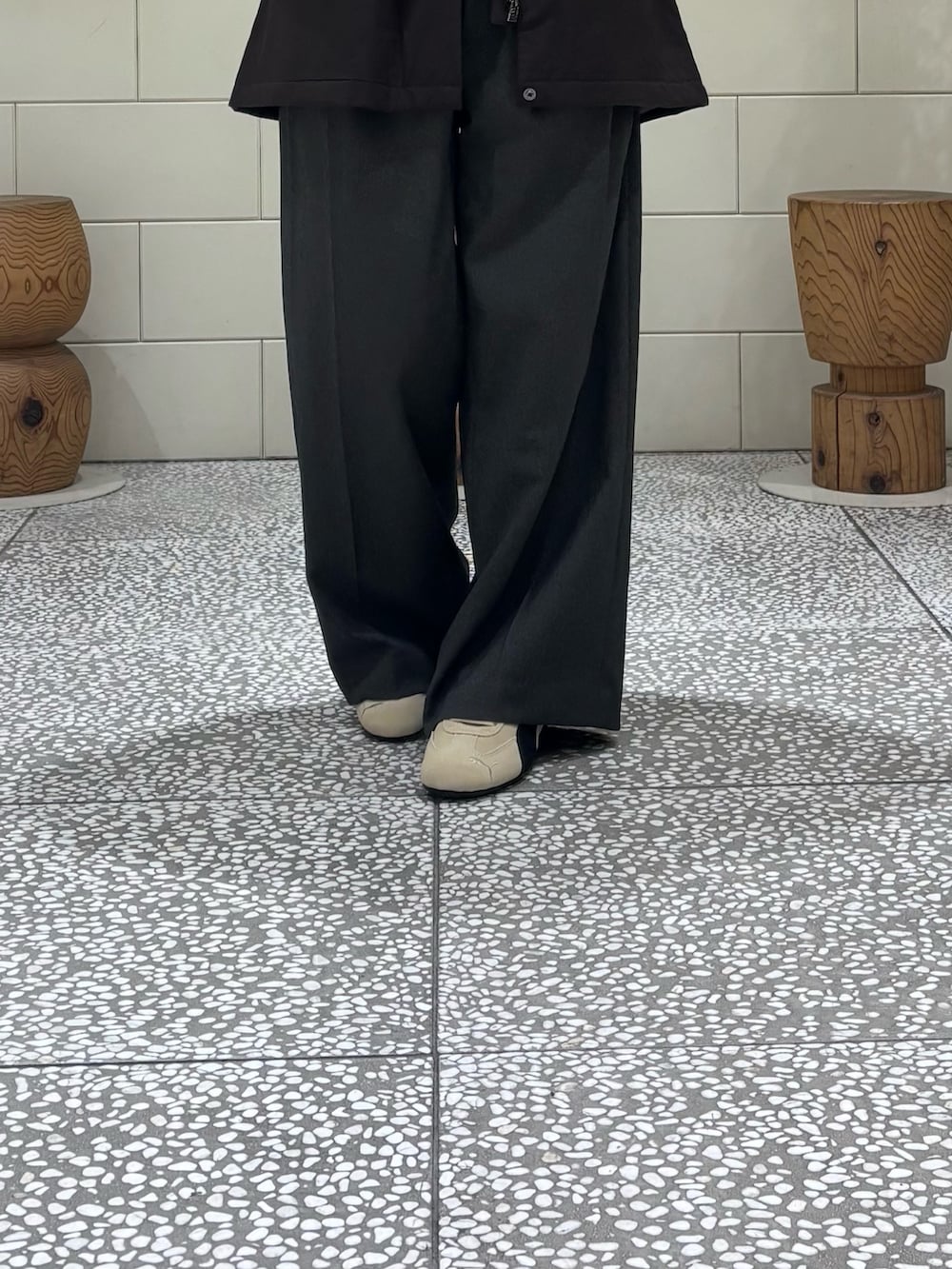 タックとセンタープレスの入ったゆったりシルエットながらキレイめに決まるスラックスです。万能に活躍してくれます。