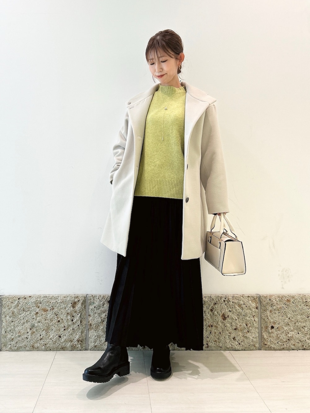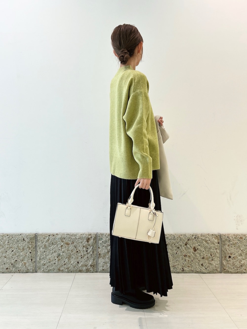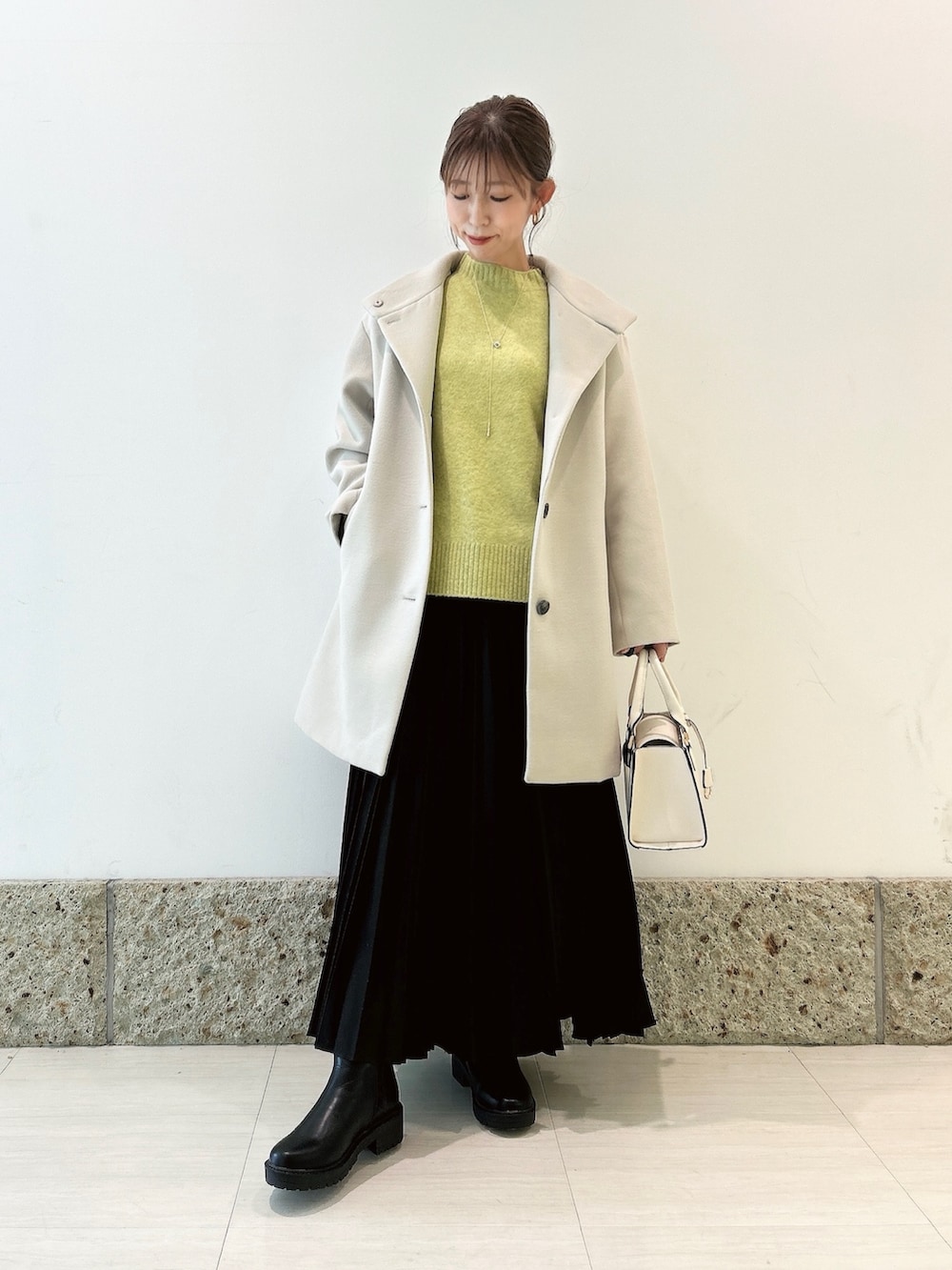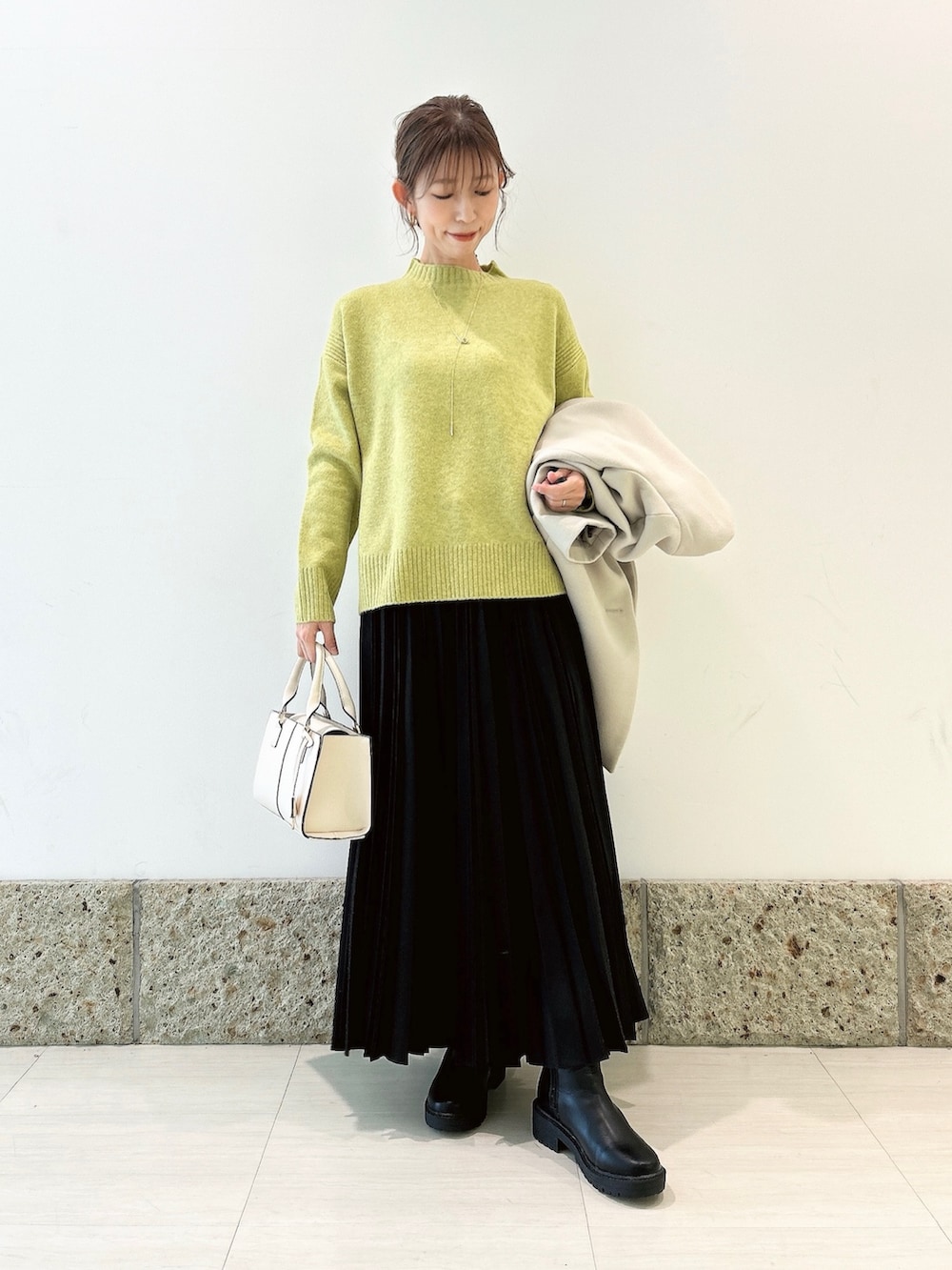 ボトムにはブラックのロングスカートを。
