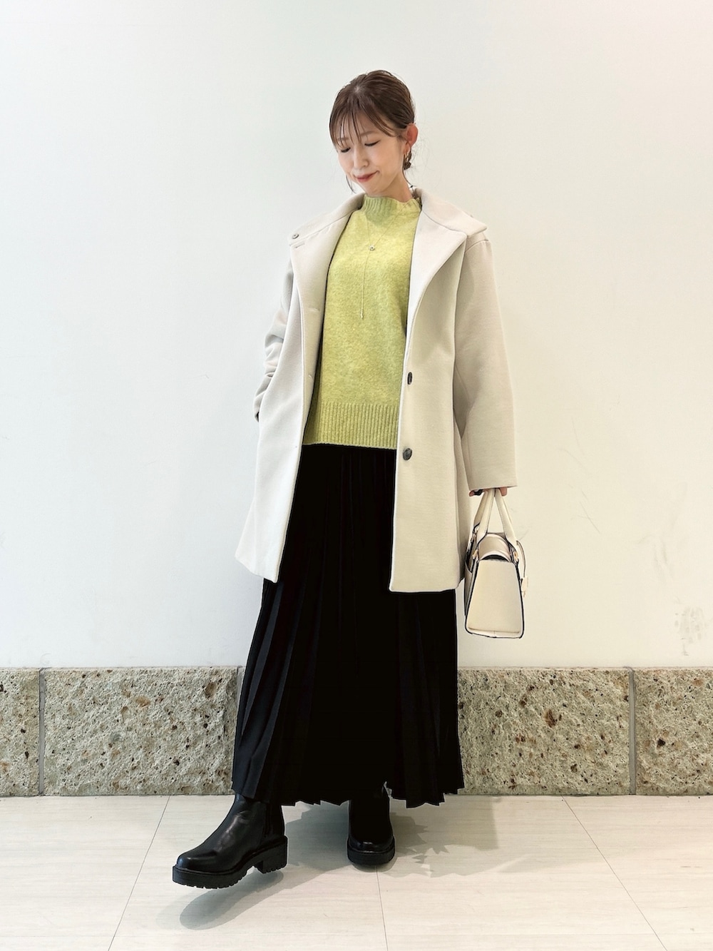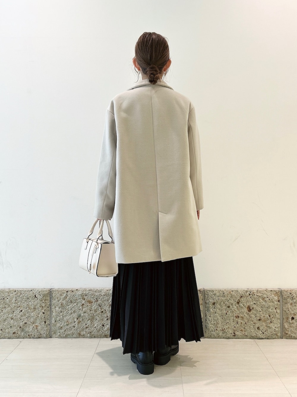 グレージュカラーのコートを。