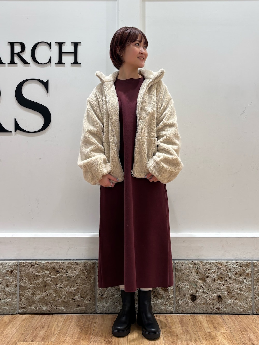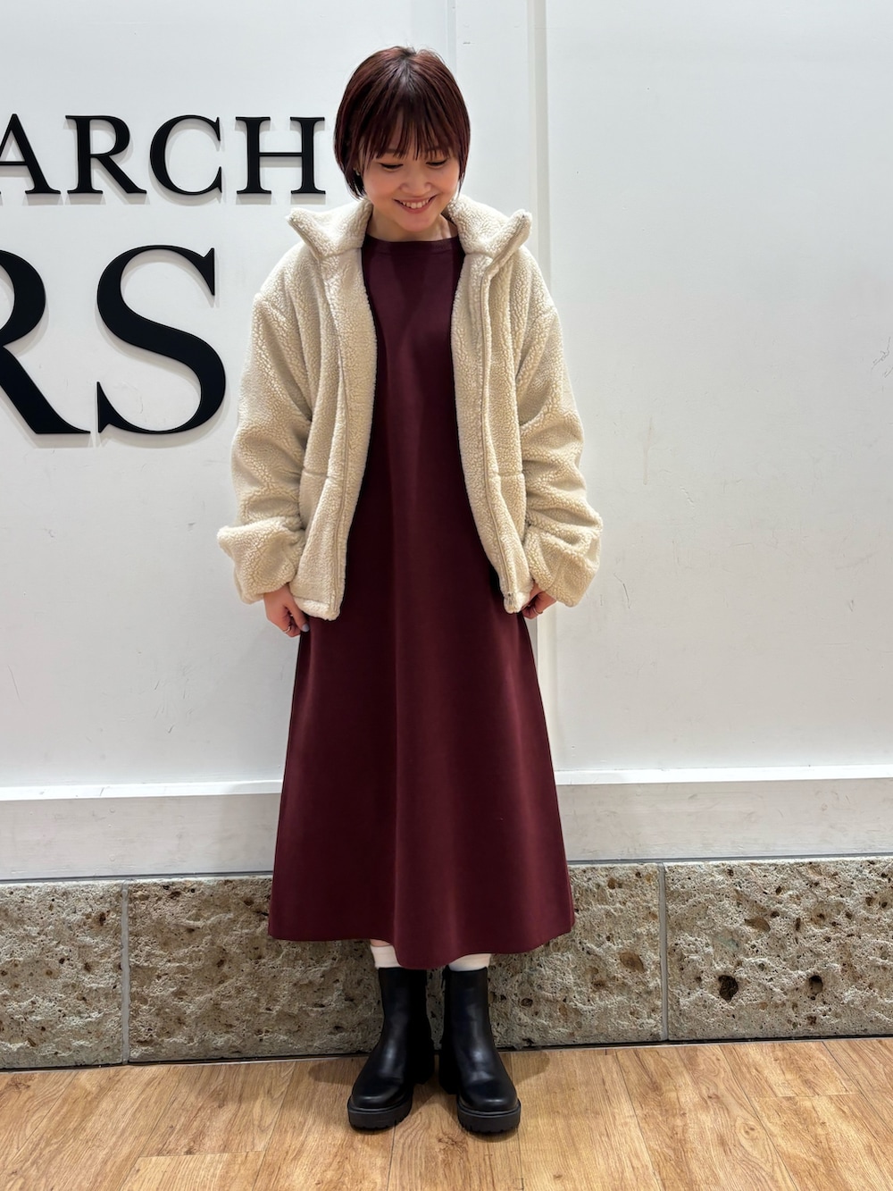人気アイテムのスウェットライクニットワンピース着用しています。