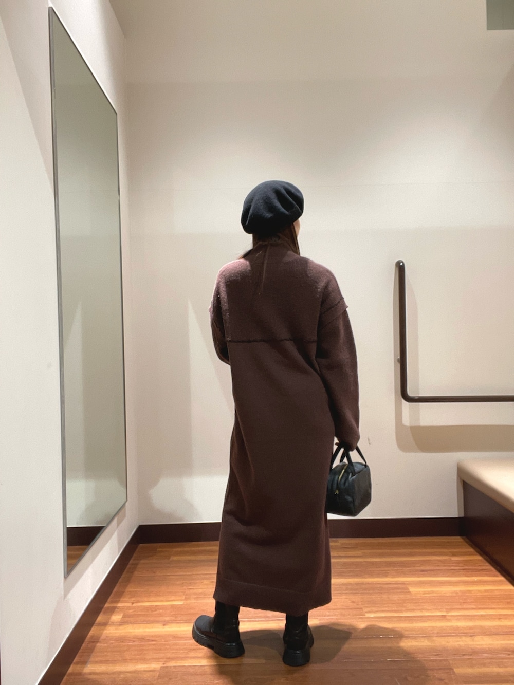 ゆとりのある楽チンて暖かいワンピースです今期流行りのブラウンで可愛く着て頂けます✨