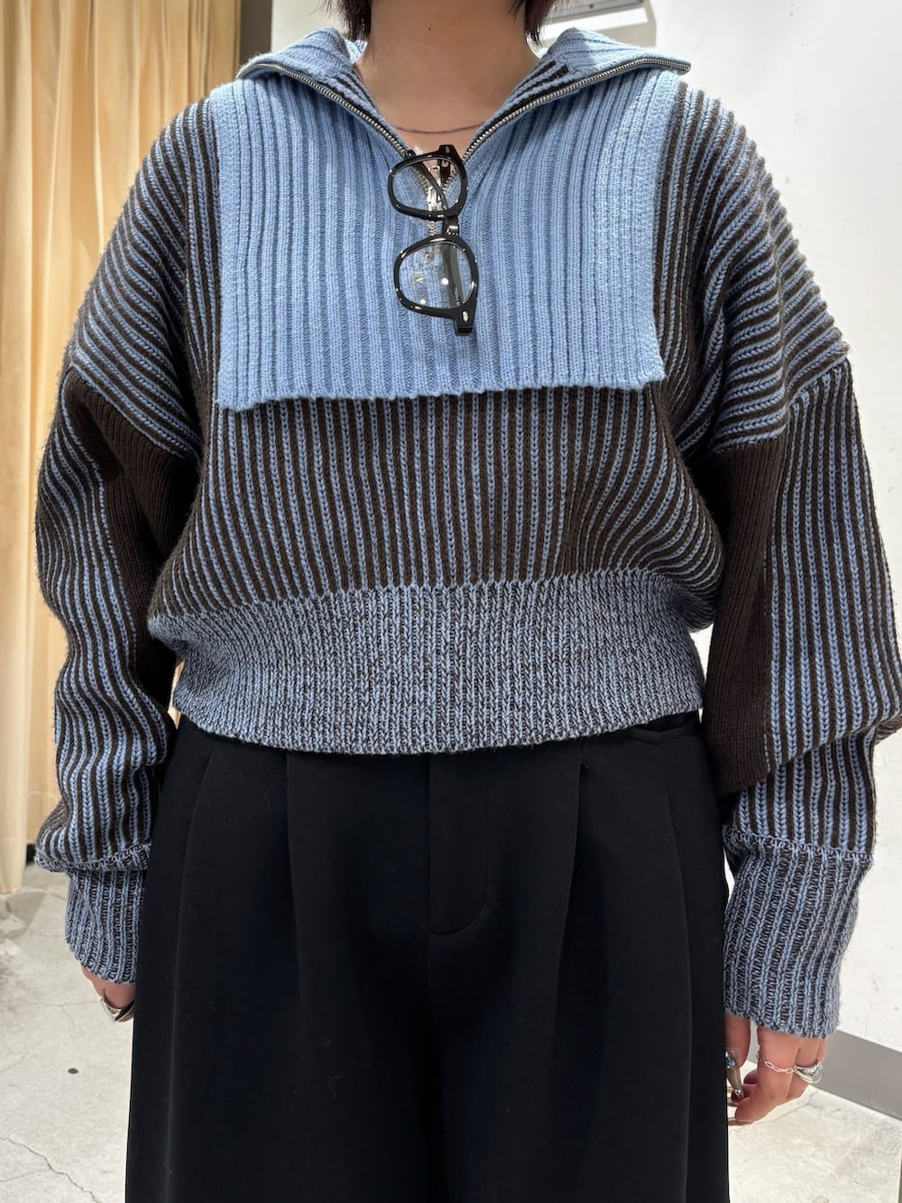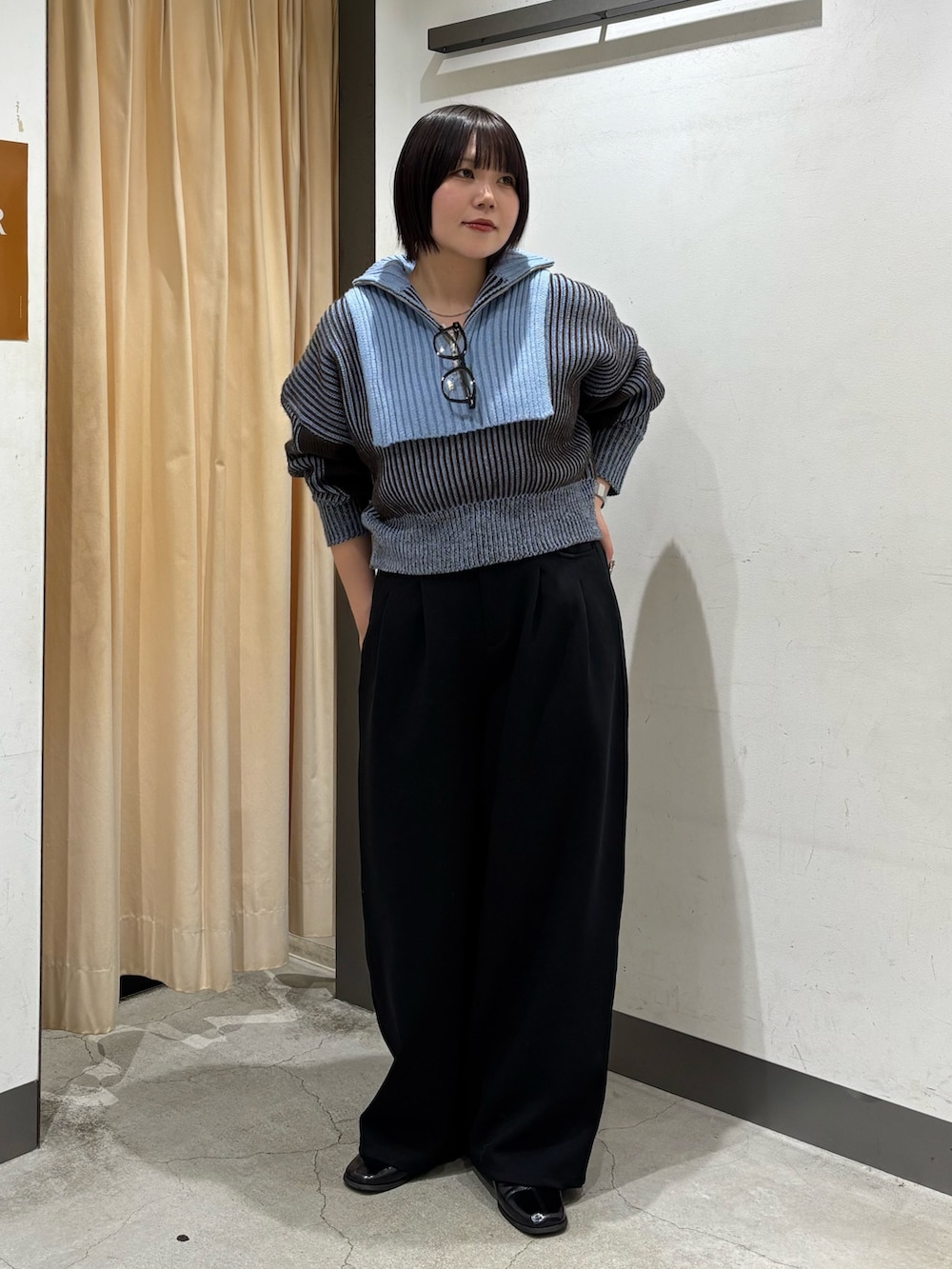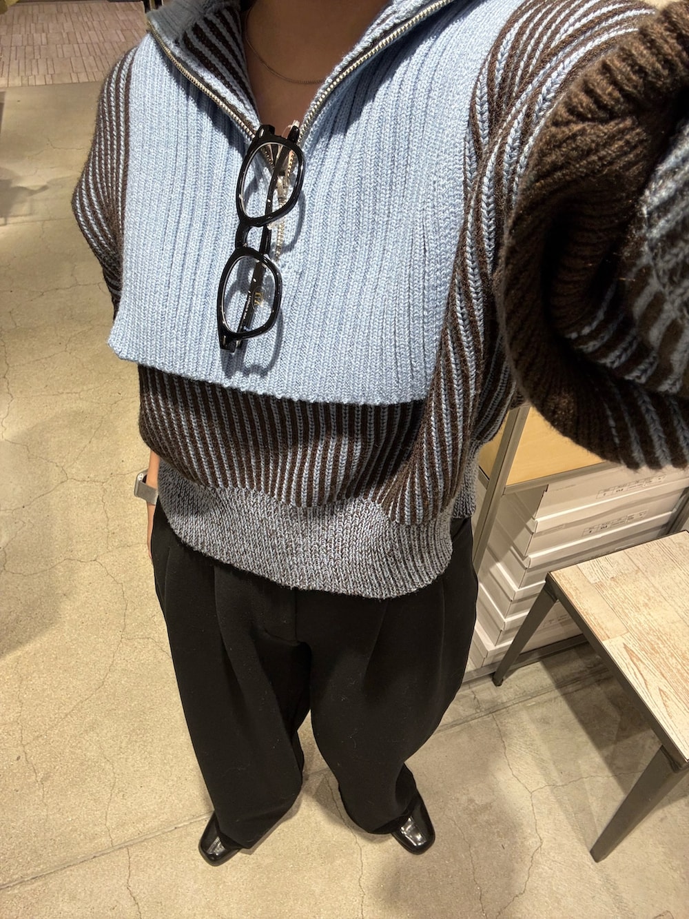 着てみた感じ、生地厚めのしっかりニットなので骨格ストレートさんは中にタートルネックなどのインナーはレイヤードせずに1枚で着る&ジップは下ろして首元スッキリ見せることで着膨れを抑えながら着ていただけますよᵕ ᵕ ♡