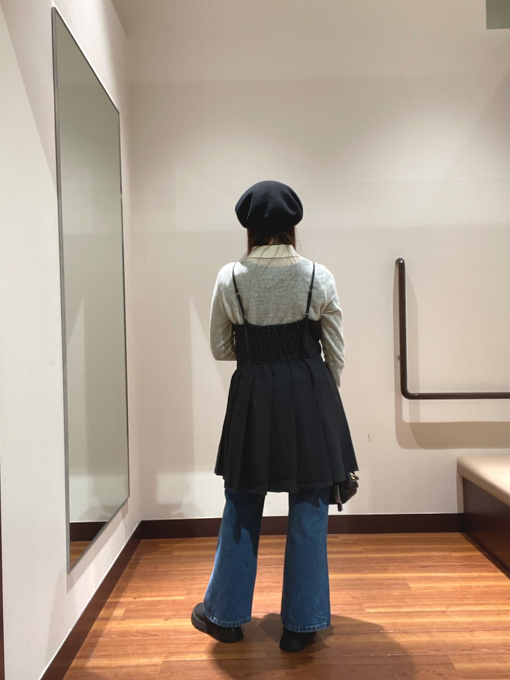 デニムもフレアタイプで形がキレイで脚長効果がありレイヤードスタイルにも使いやすく1本持っていると重宝しますよ‼︎