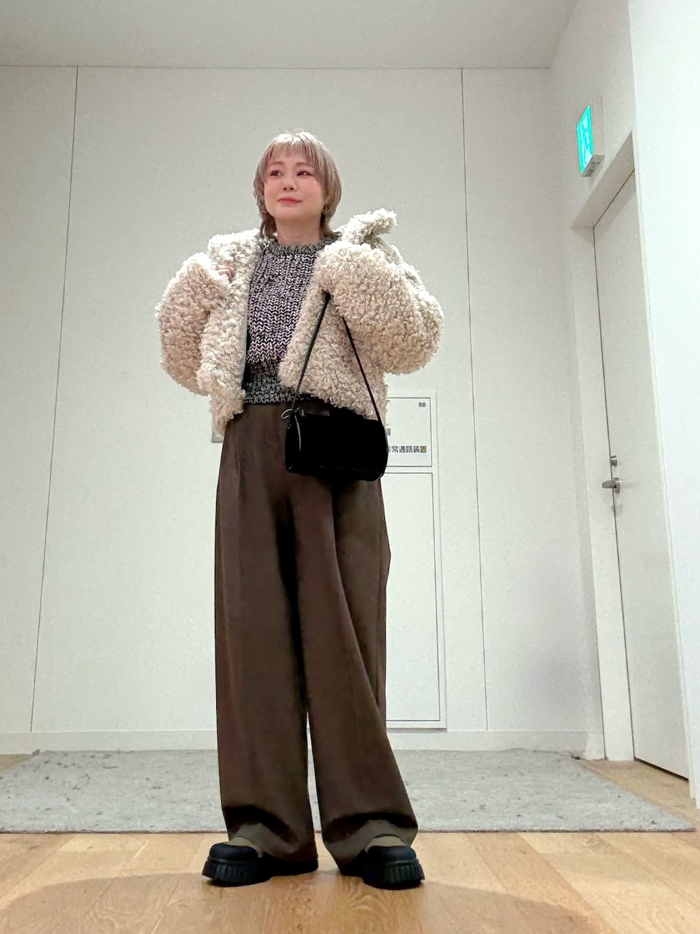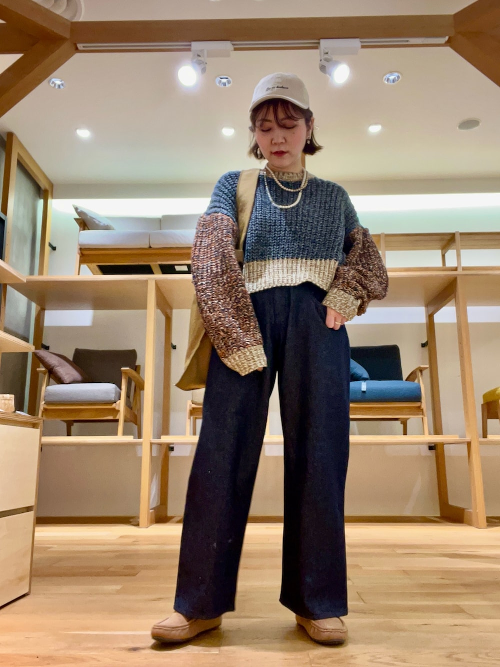 中物には、バイカラーのニットを合わせポイントに‼︎