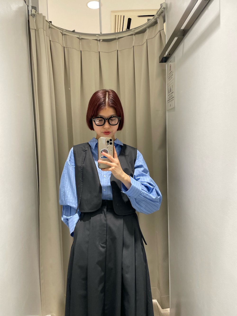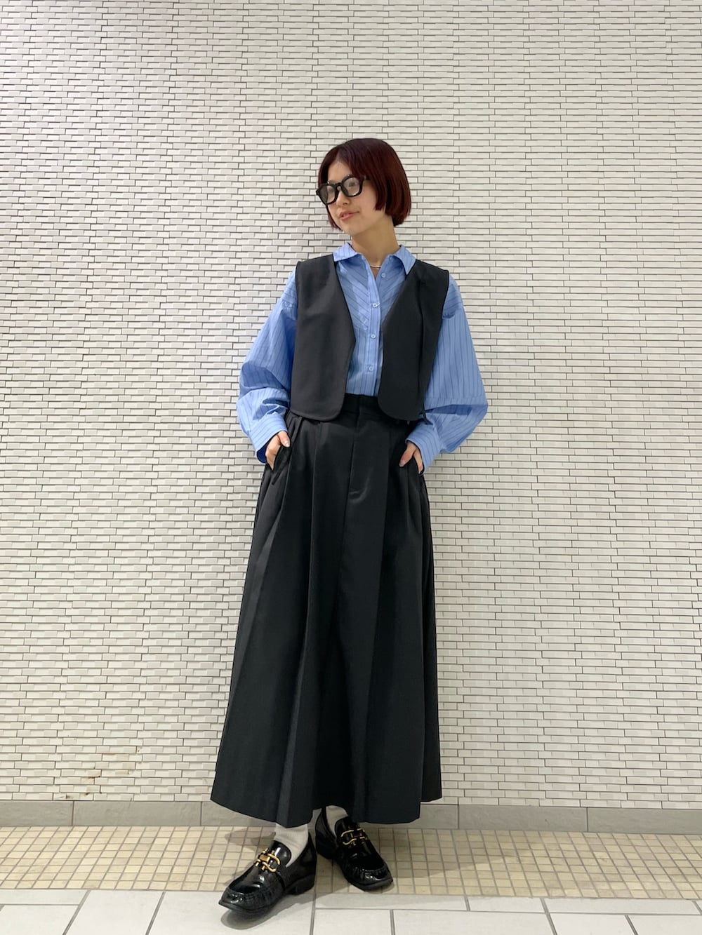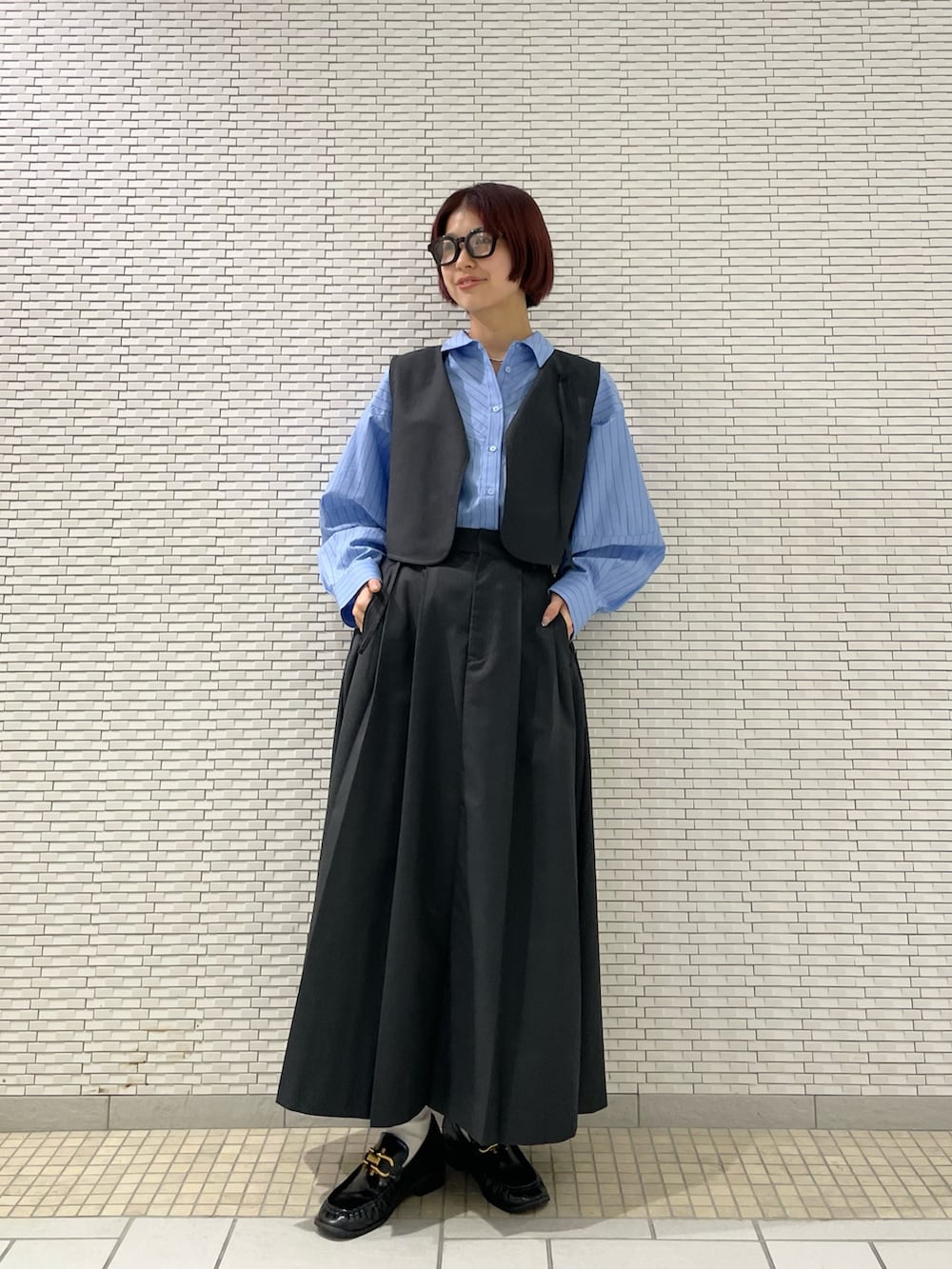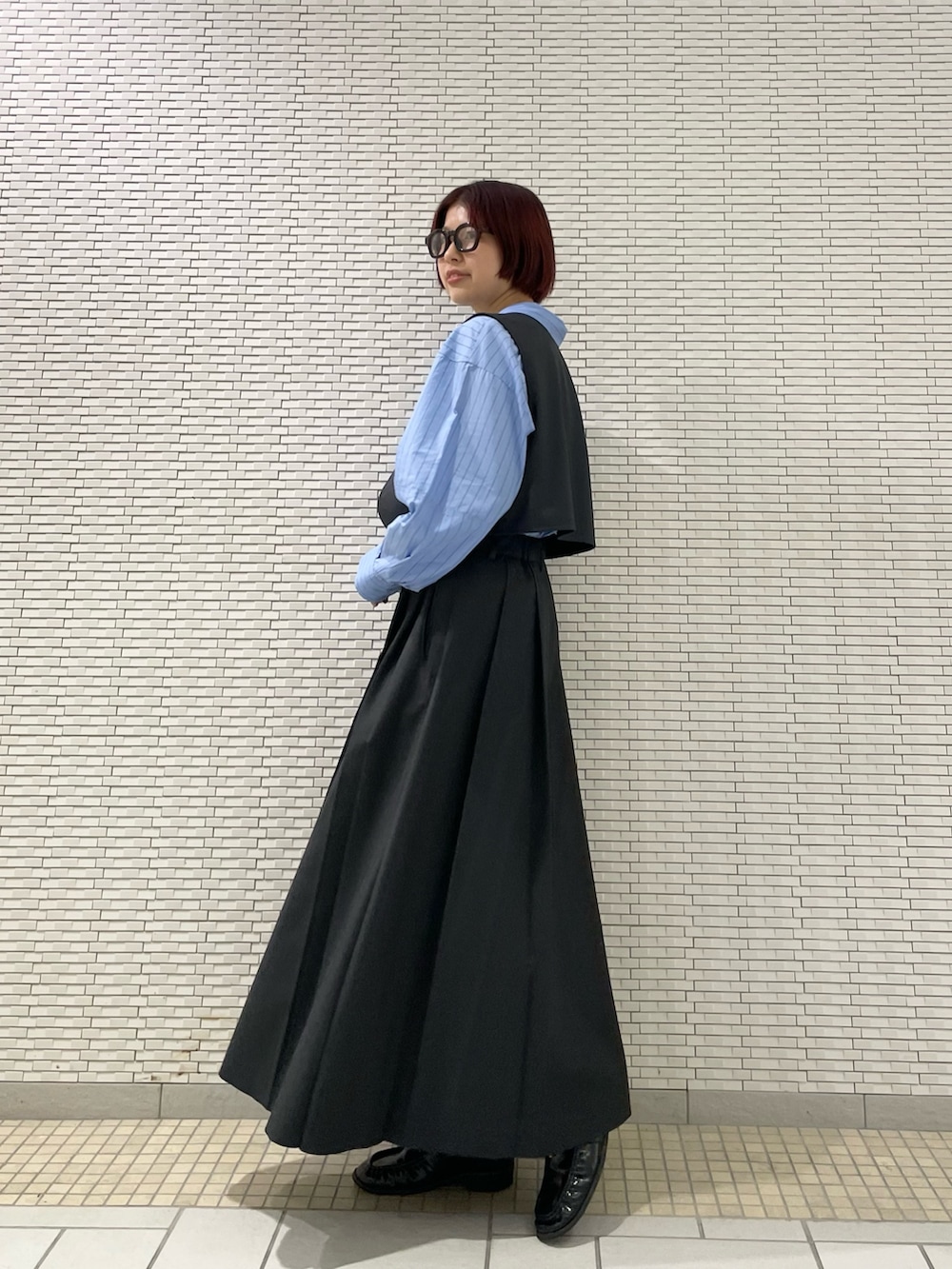 どんな雰囲気にもハマってくれるブルーシャツをセパレートワンピースのインナーに◎