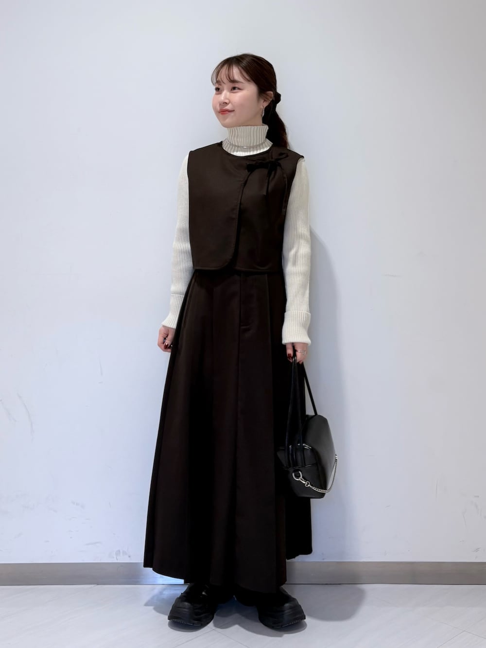 短丈のベストが低身長でもしっかりウエストライに来るのでスカートと合わせた時にくびれがシュッと細く見えます🫨