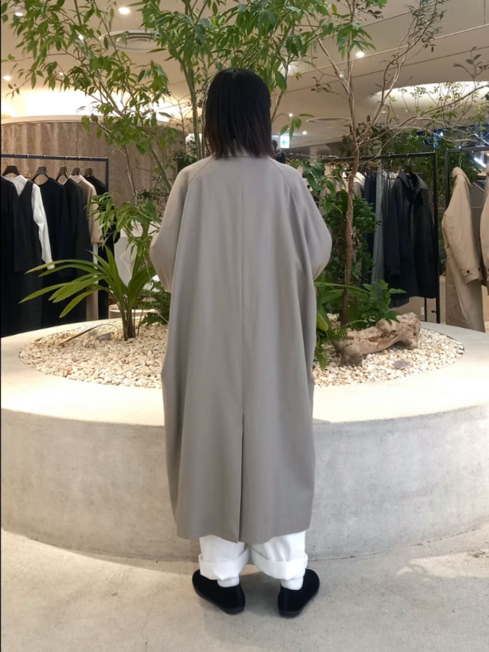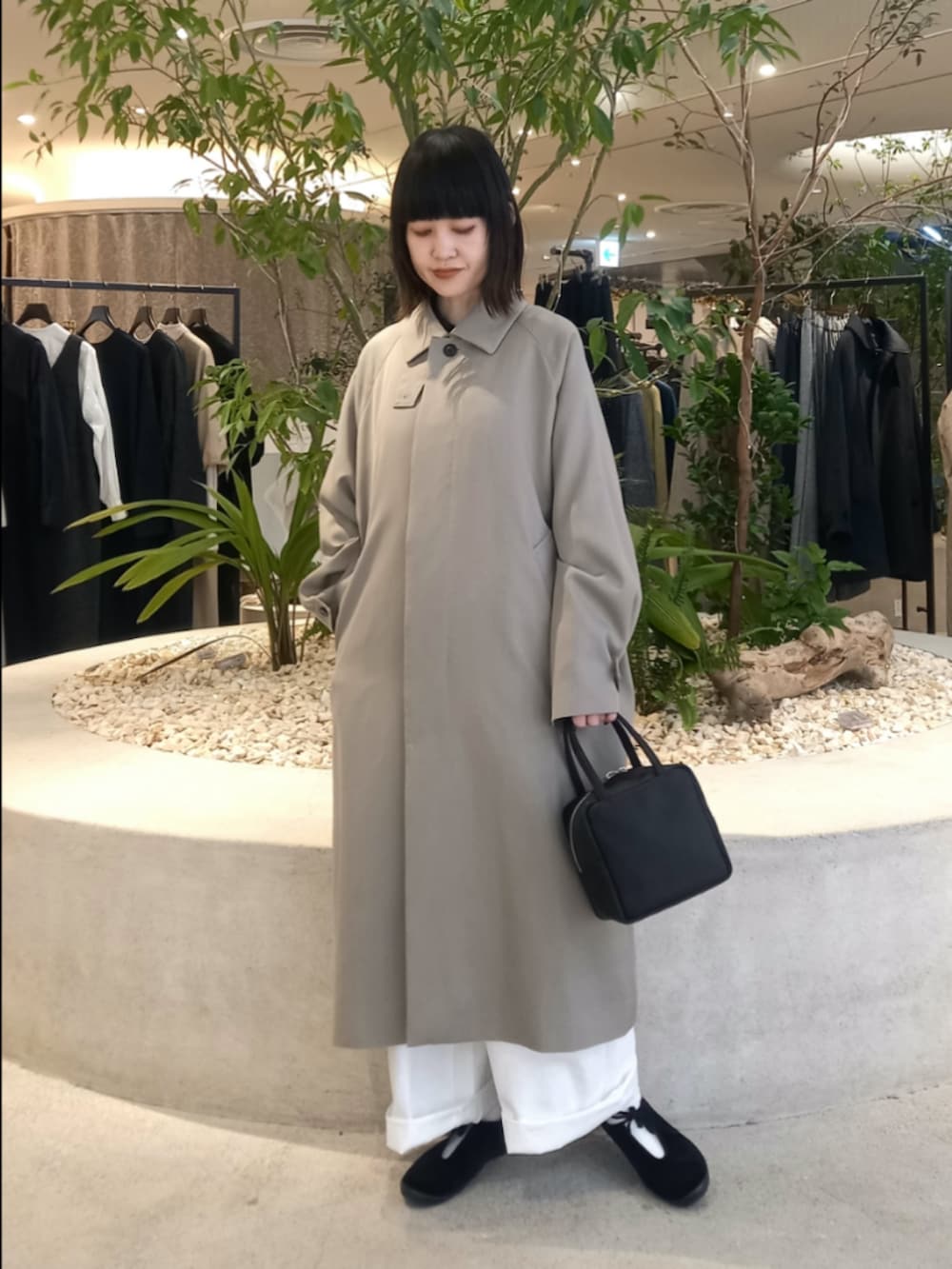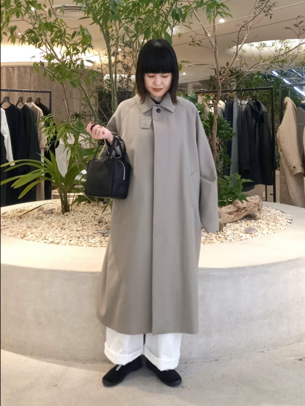 GREGEの色味が上品なウールコートは、春先まで長く着ていただけます。