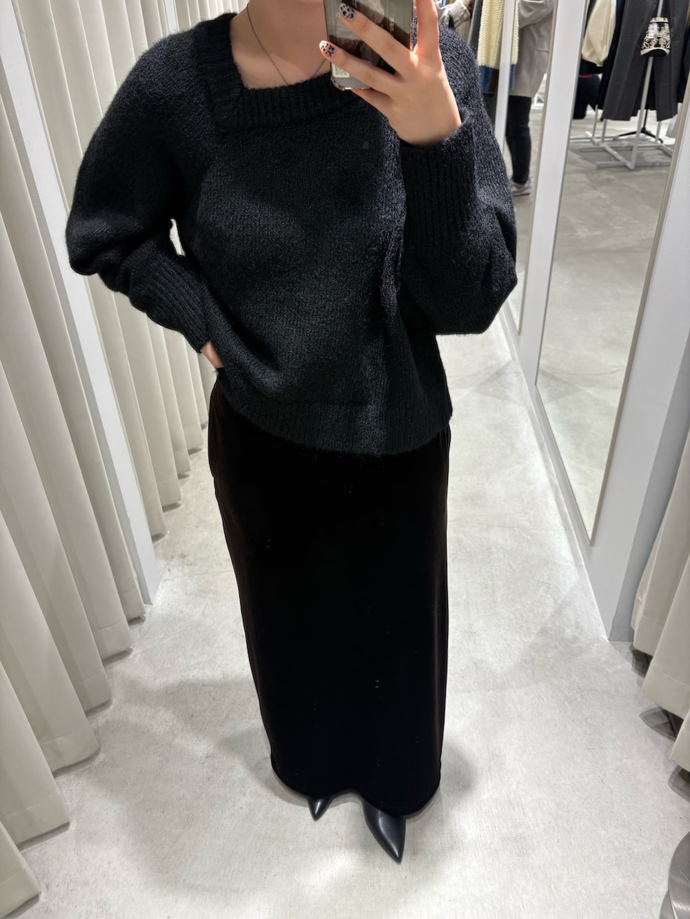 ブラウンのベロアスカートを合わせて大人な雰囲気に🤸🏻