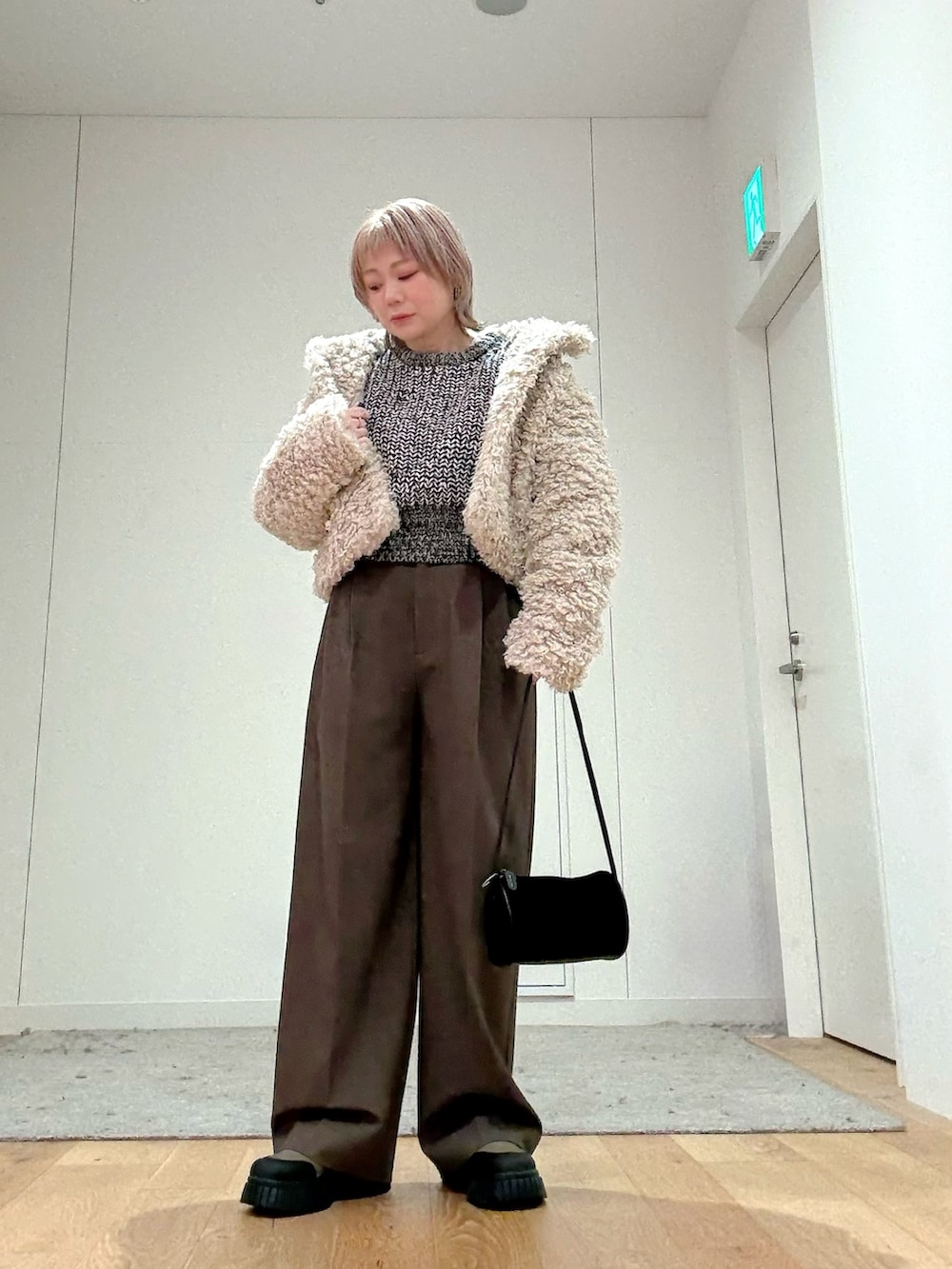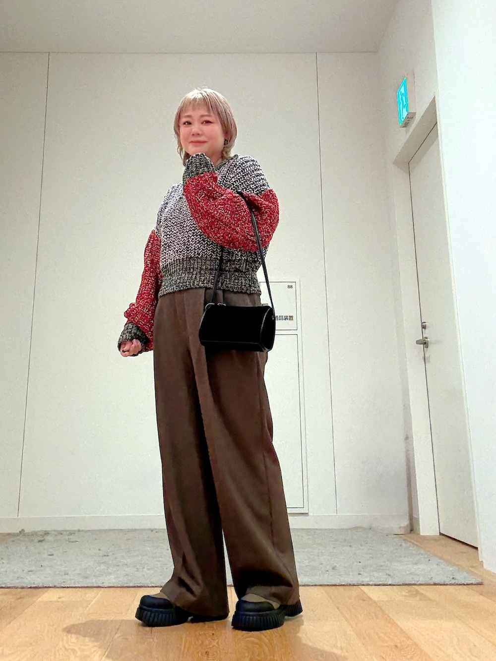 配色が可愛いニットは、ショート丈がスタイルアップさせてくれます!スカートと合わせても◎!