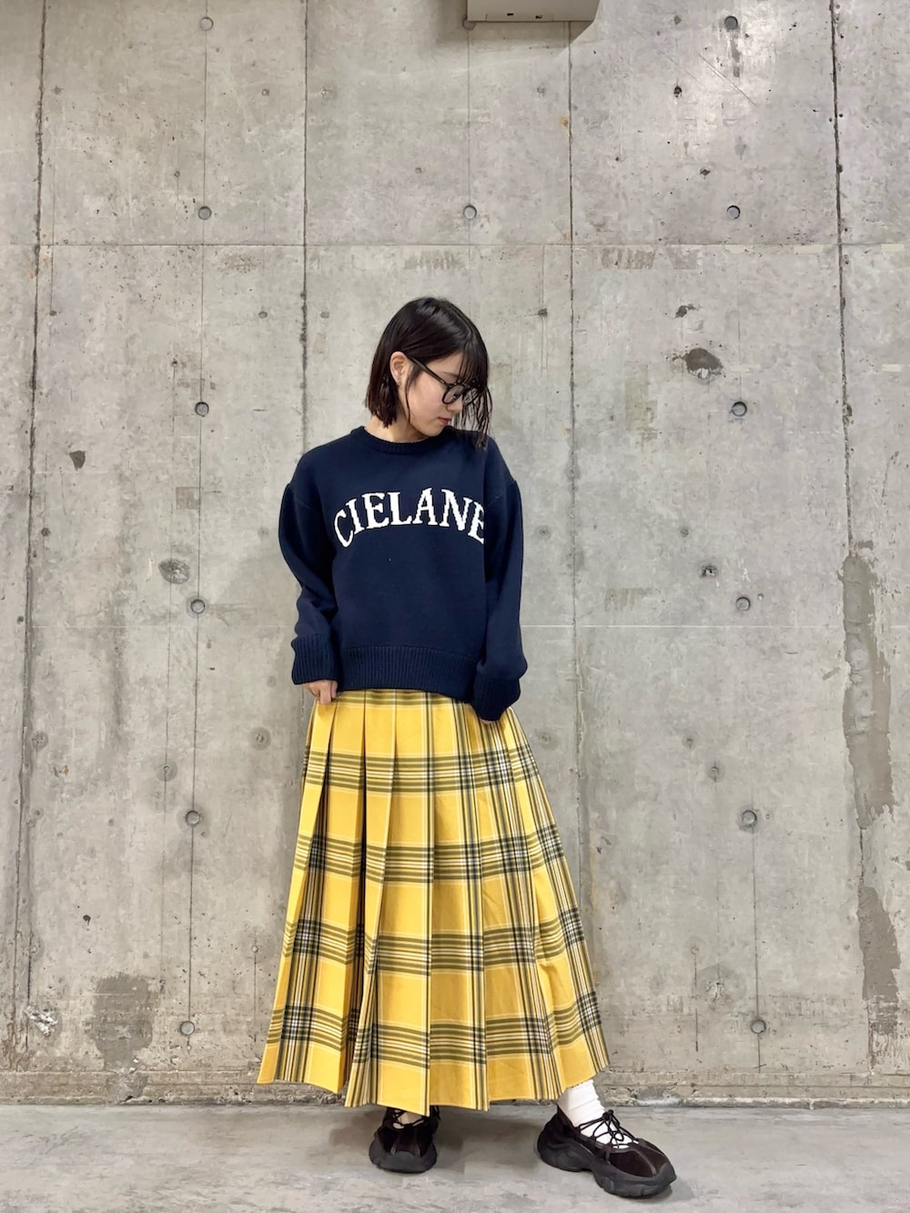 ネイビーとイエローの組み合わせは、アウターも合わせやすく、着回しもしやすいため、この冬に持っていて正解のアイテムです👍