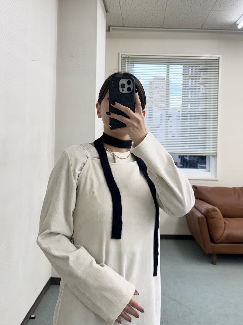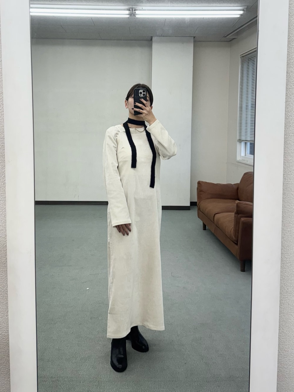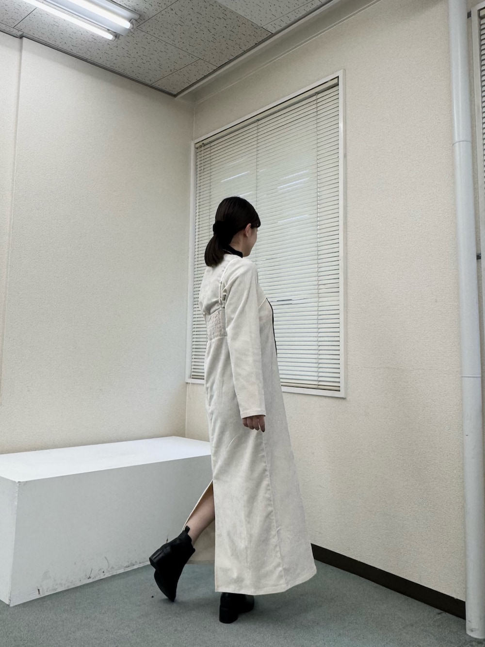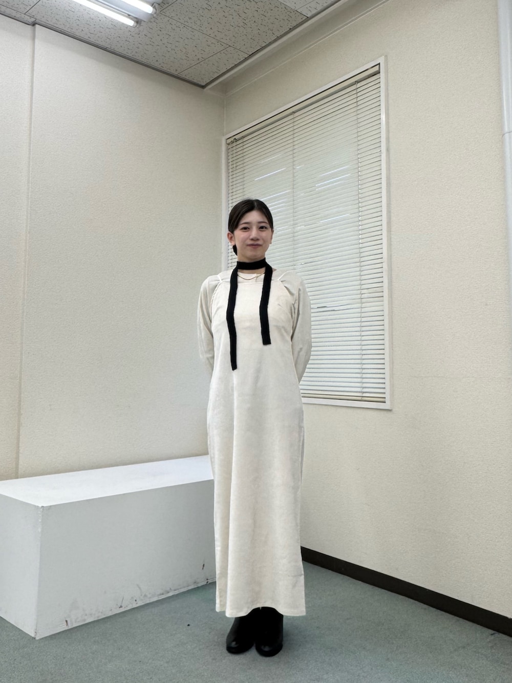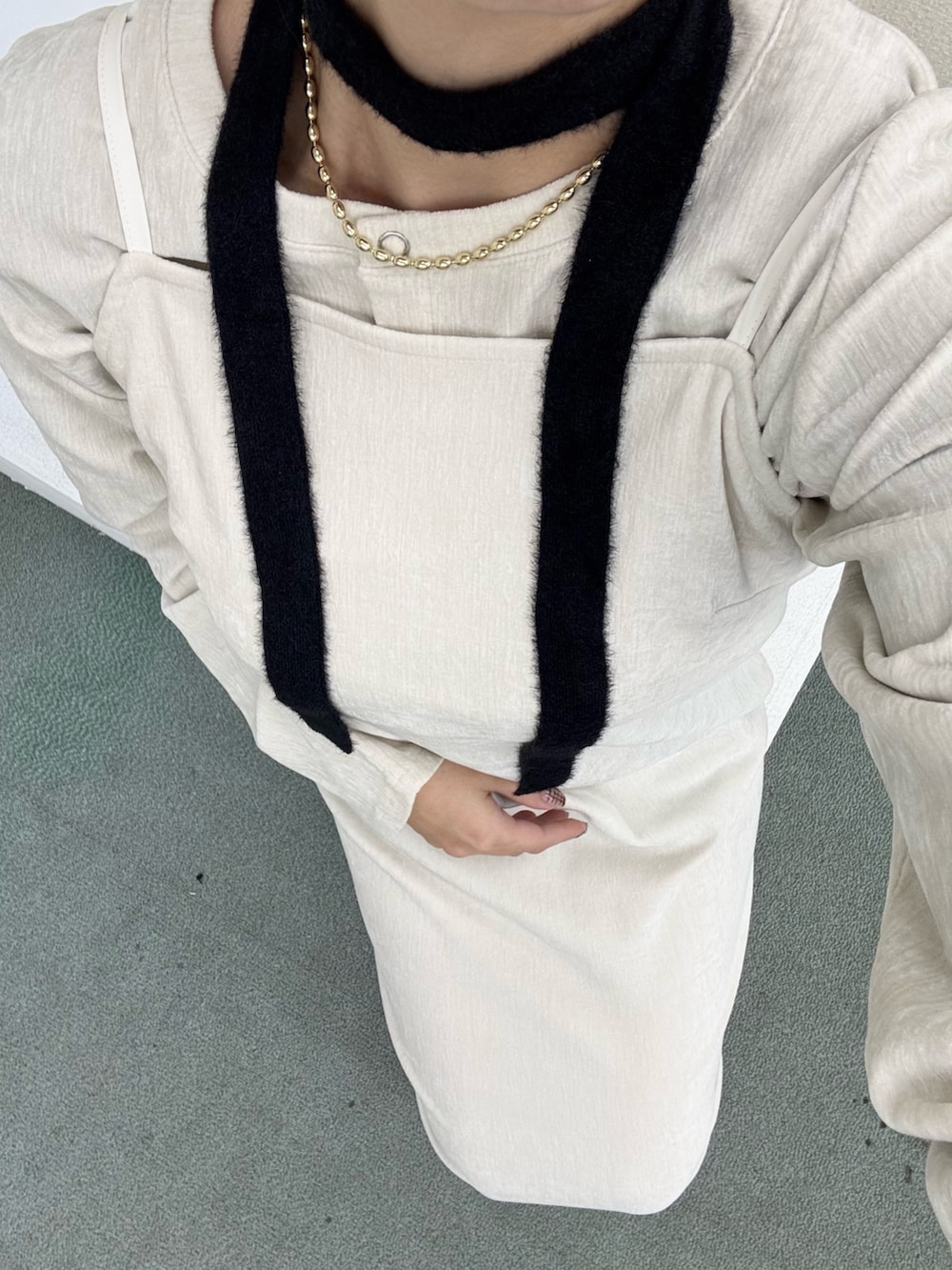 アイボリーのワンピースにブラックの小物で大人っぽいコーデにしてみました!