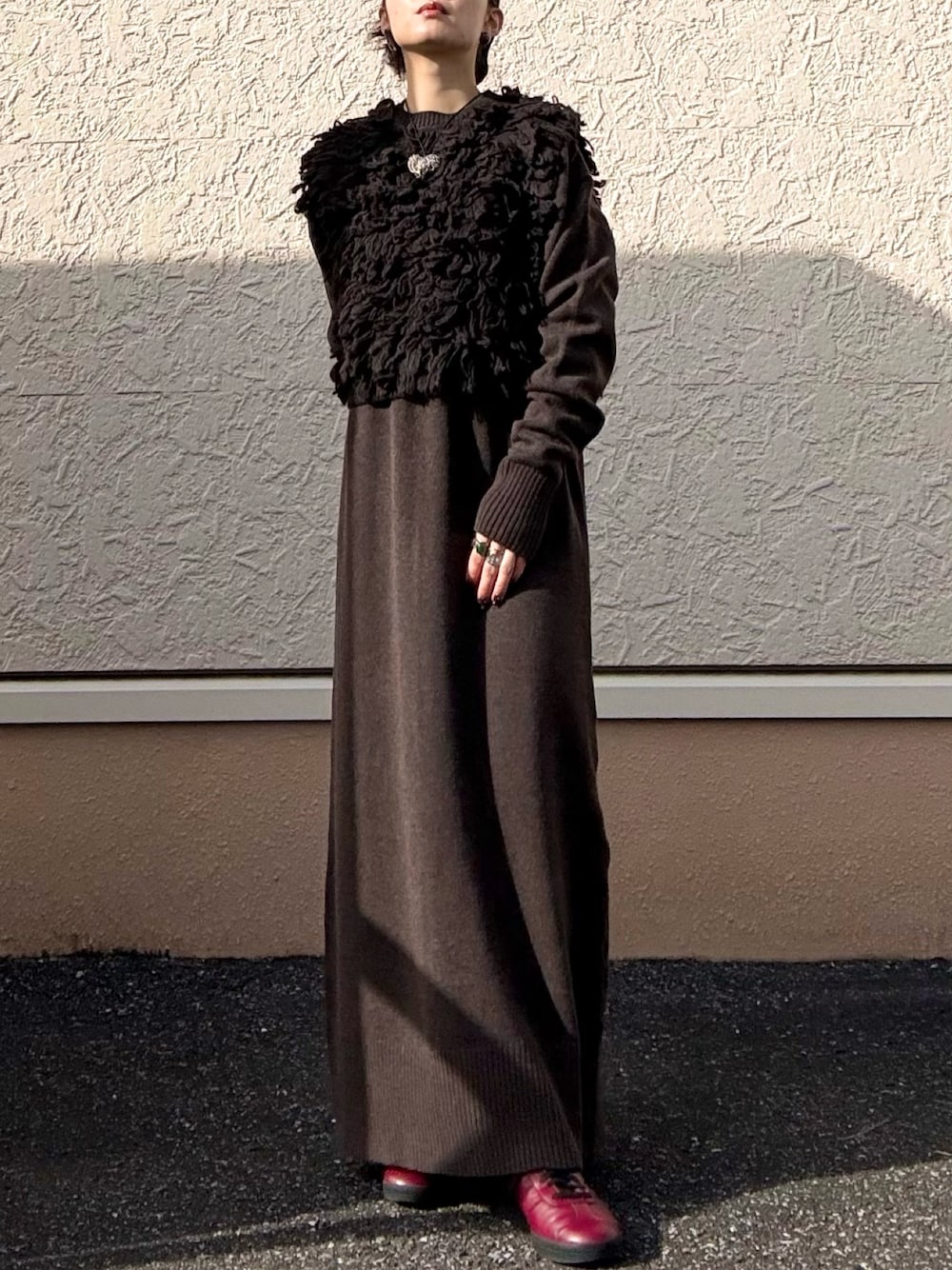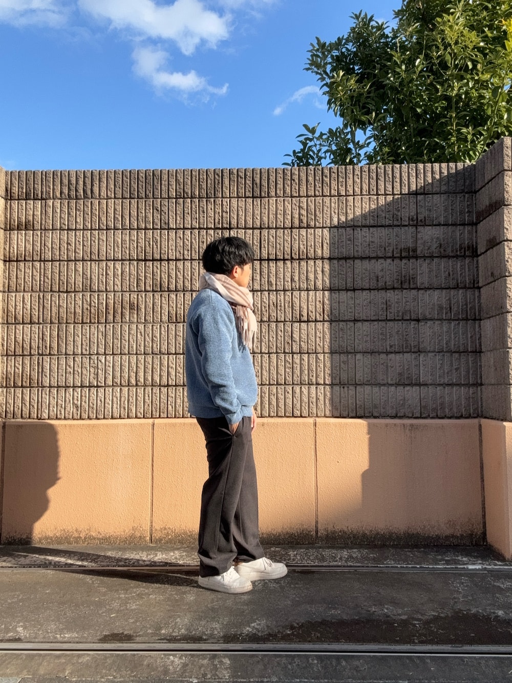 ゆとりのある作りなのでインナーにシャツや厚手のカットソーを合わせていただいても窮屈感なく着用いただけます。